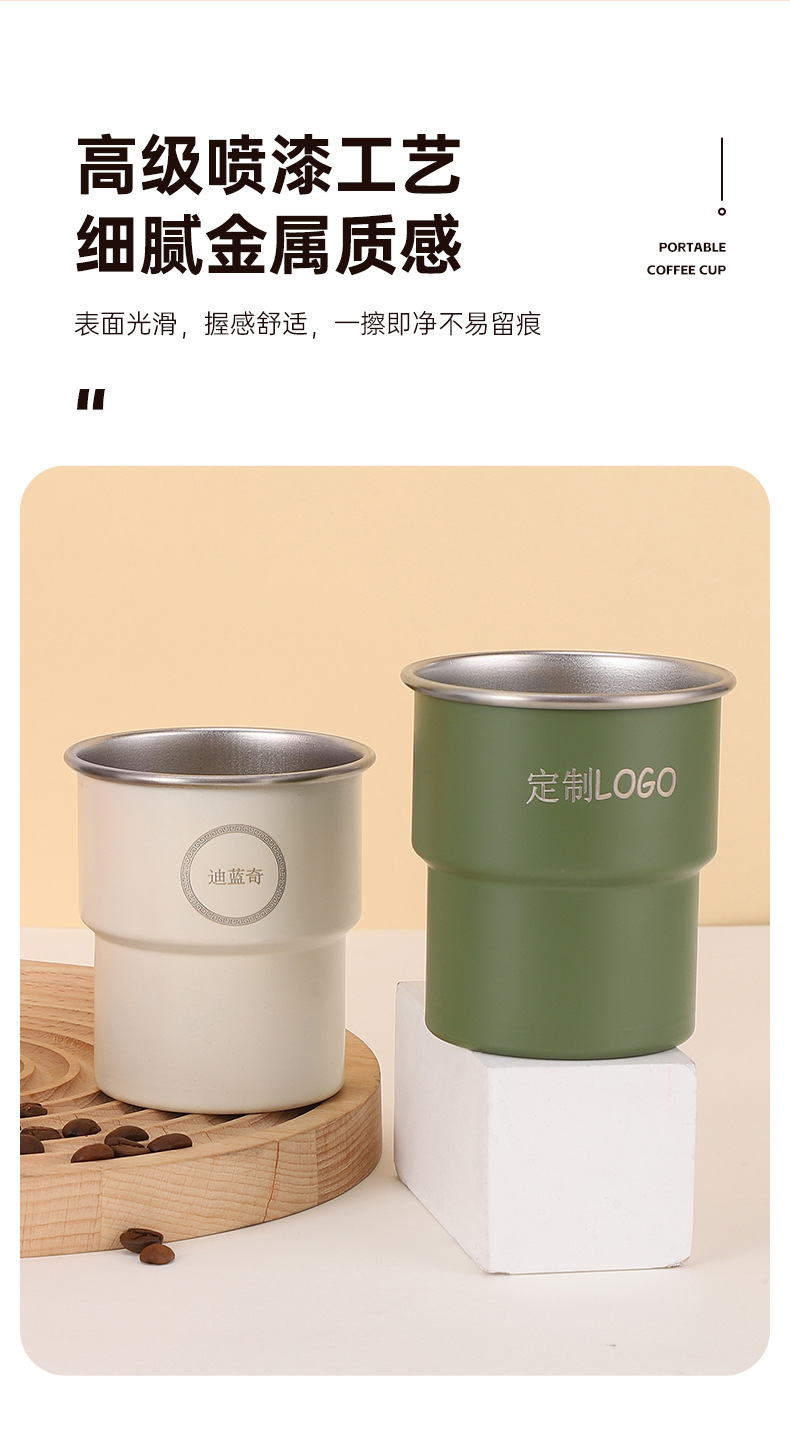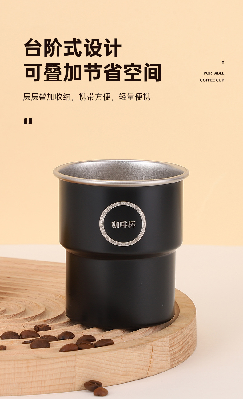 304不锈钢户外单层台阶杯野外便携卷边露营杯随手木套咖啡燕子杯
