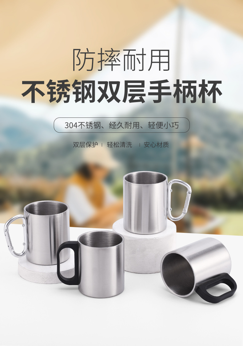 跨境亚马逊不锈钢双层水杯登山杯随身户外运动杯野营便携杯马克杯