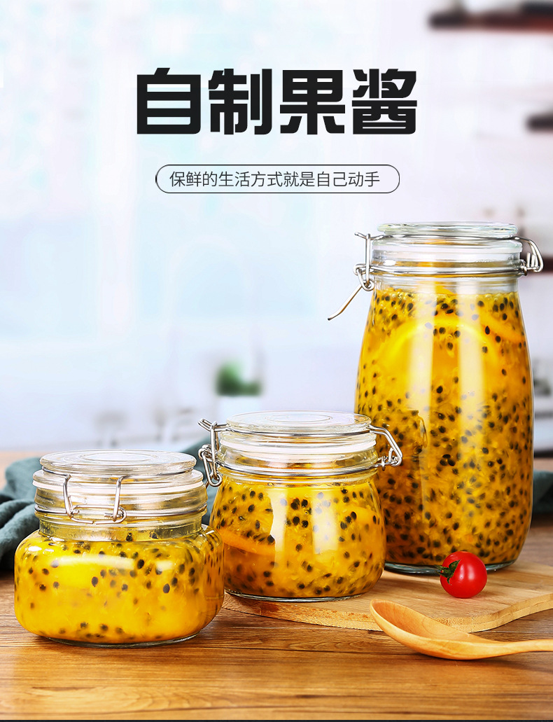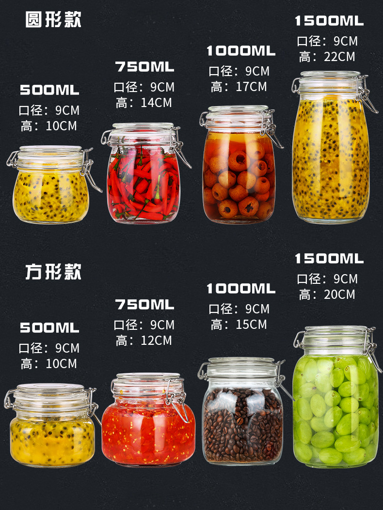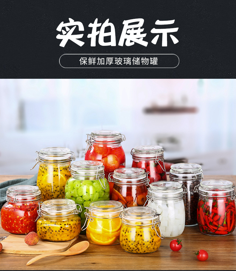 密封罐玻璃卡扣蜂蜜瓶咸菜罐泡酒泡菜坛子带盖家用储物罐子储物瓶