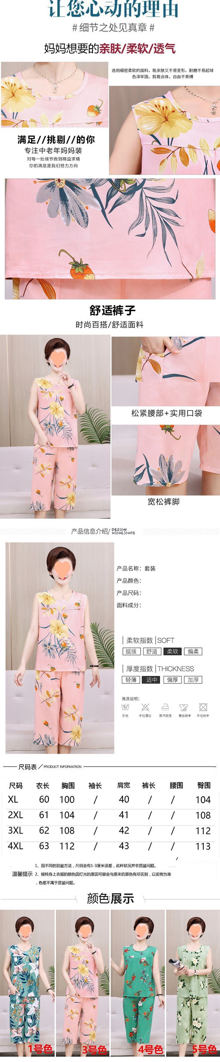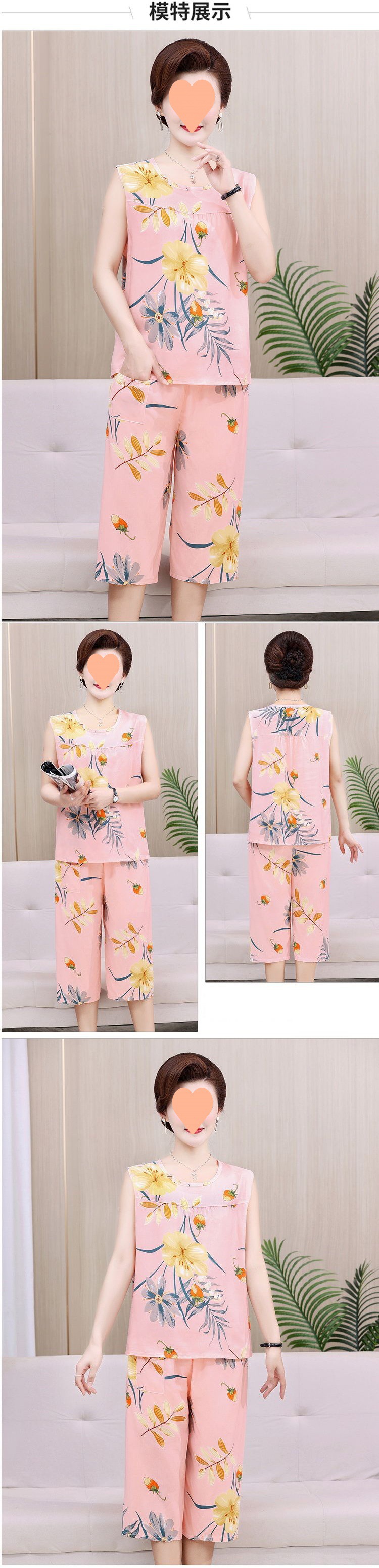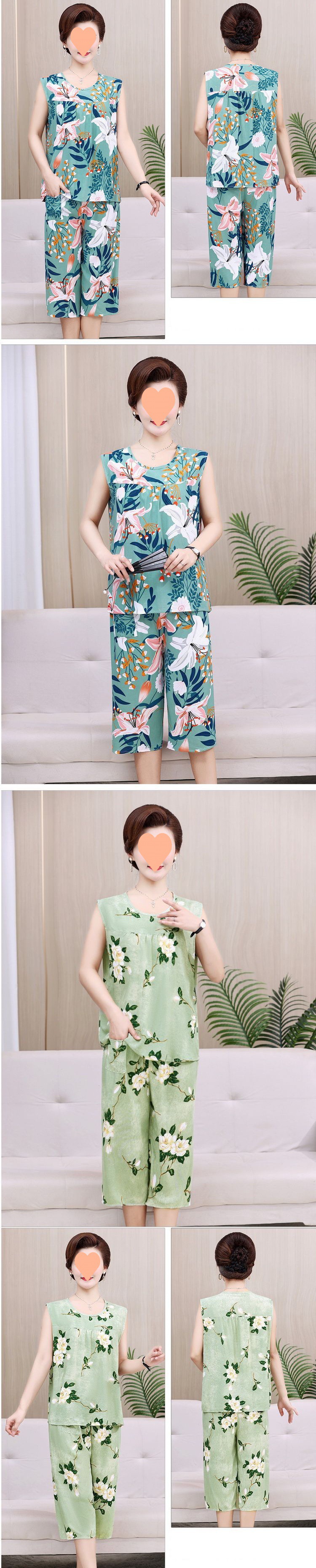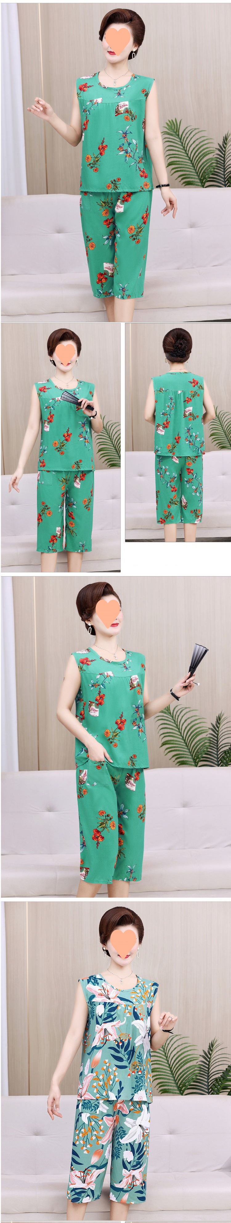 棉绸妈妈睡衣女夏季人造棉奶奶大码无袖套装中老年人女士棉绸薄款