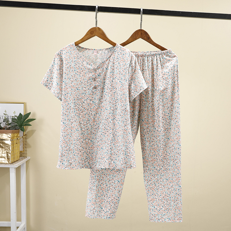 中老年妈妈睡衣 春夏季新款短袖长裤全人棉绸家居服套装加特大码