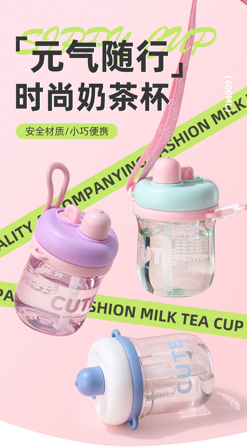 塑料水杯厂家花茶杯学生儿童果汁饮料夏季网红创意吸管杯礼品定制