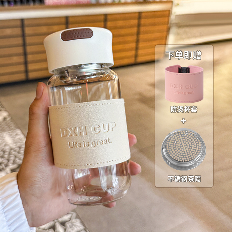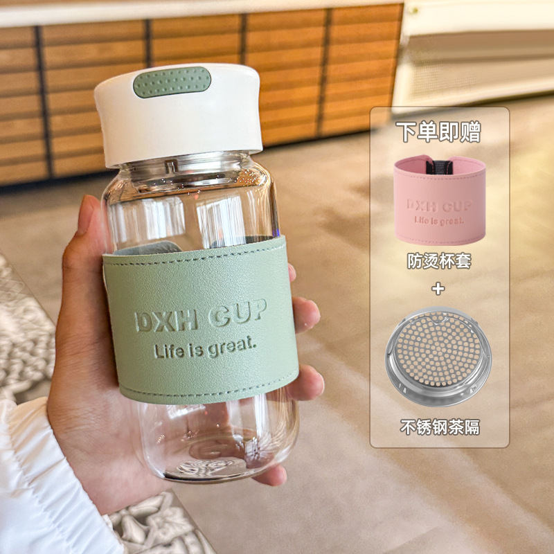 网红夏季高硼硅玻璃水杯简约透明杯子带杯套便携提手随手杯定制
