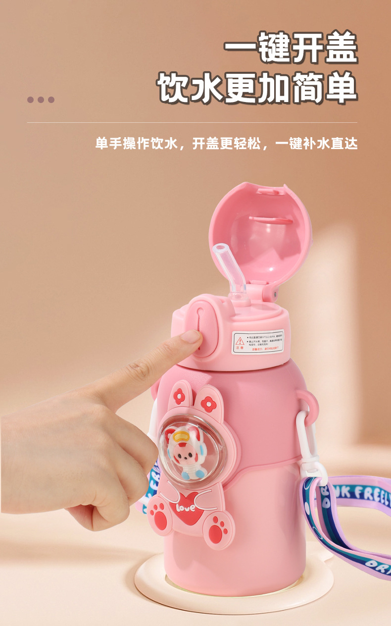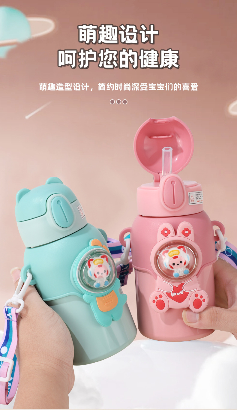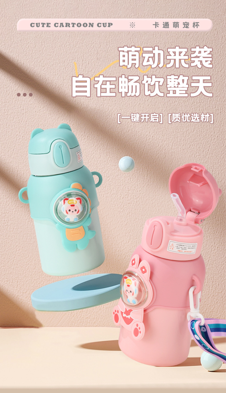 网红趣味儿童保温杯学生幼儿园斜跨吸管水杯子礼品水壶批发定制