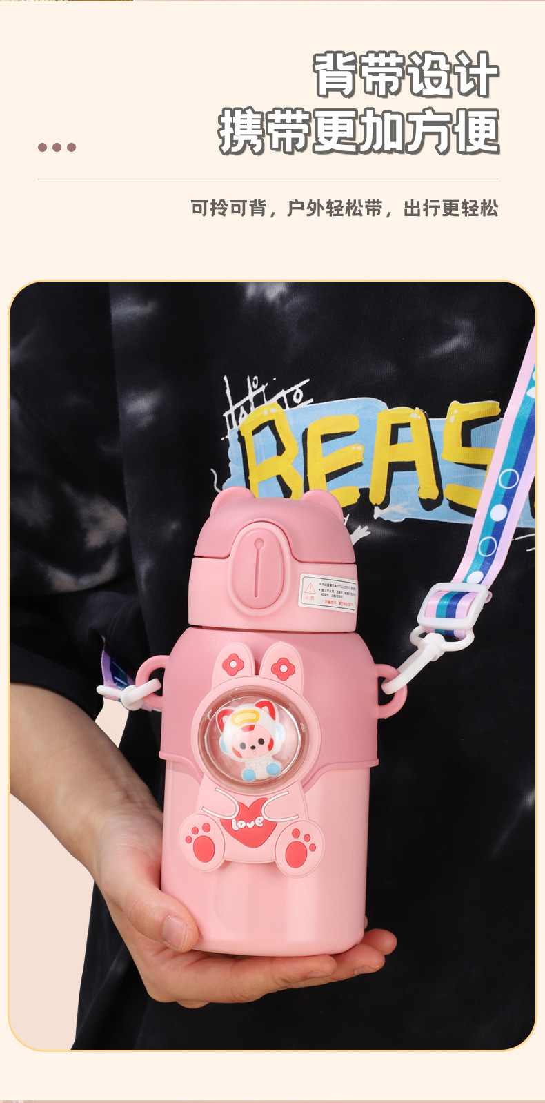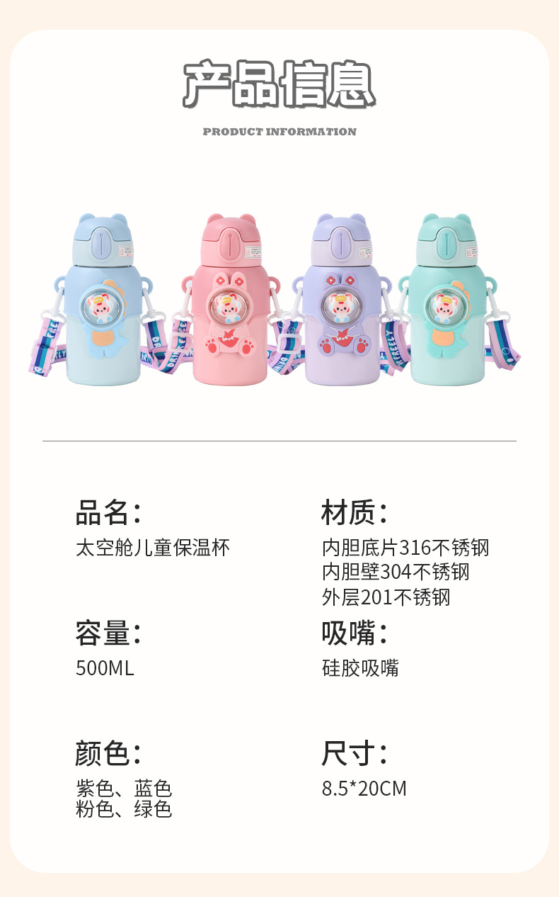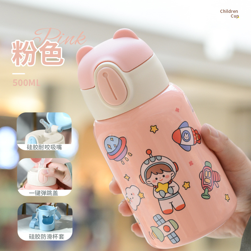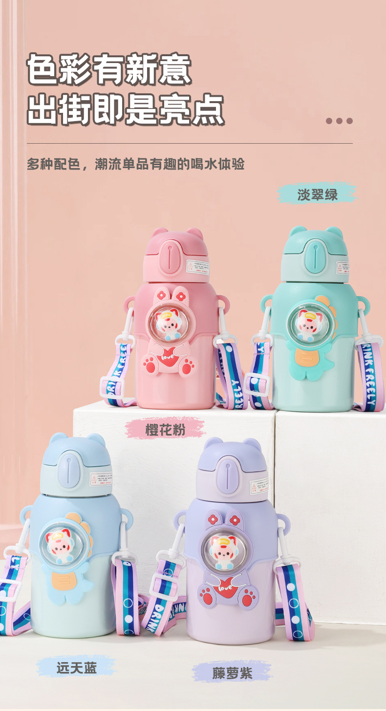 网红趣味儿童保温杯学生幼儿园斜跨吸管水杯子礼品水壶批发定制