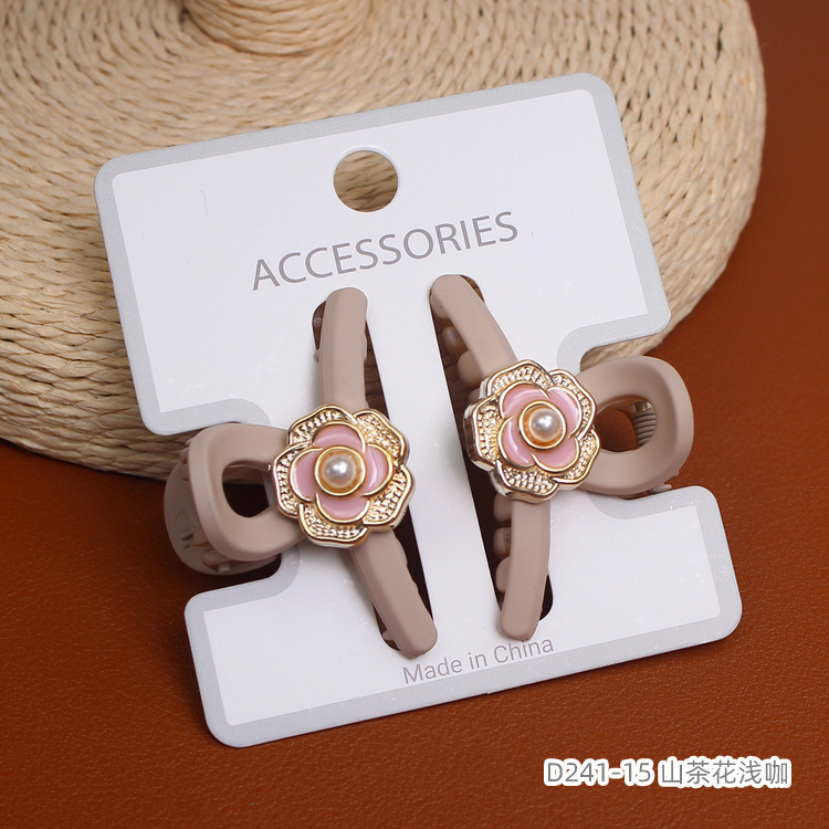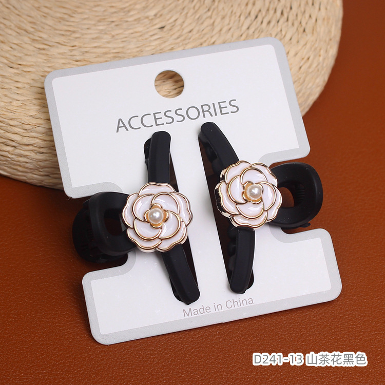 高级感小香风发饰对装山茶花小抓夹气质半披发鲨鱼夹侧边刘海发夹
