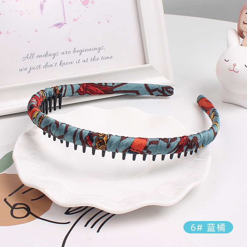 韩版布艺发箍网红碎花梳子头扣发卡手工绕布全包型带齿压发头箍