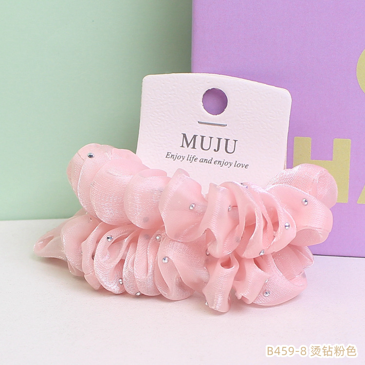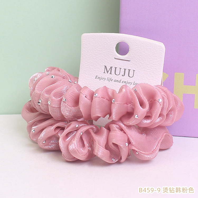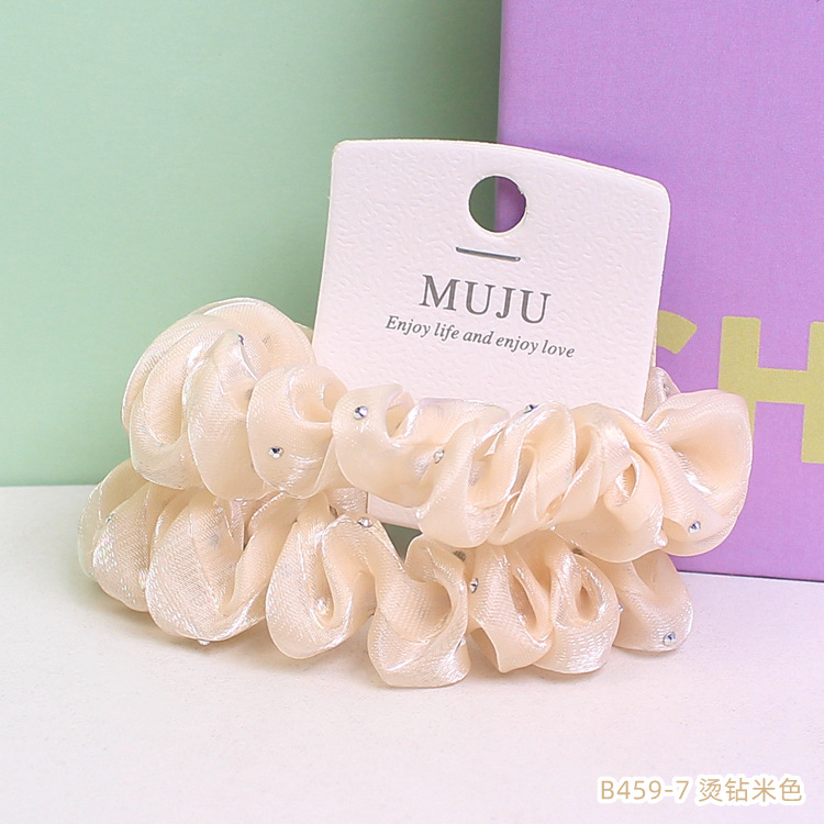 烫钻网纱小肠发圈女高级感2条卡装头绳皮筋褶皱韩版高马尾发绳
