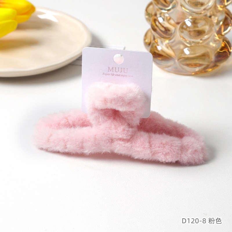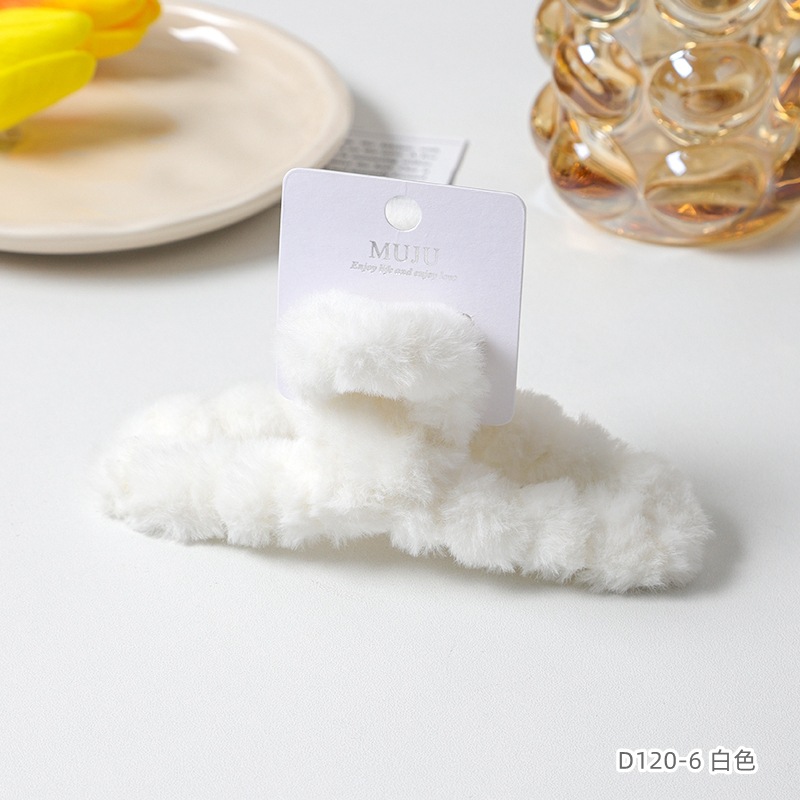 13cm加大号毛绒抓夹多发量高级感吊牌卡装发夹甜美仿兔毛鲨鱼夹