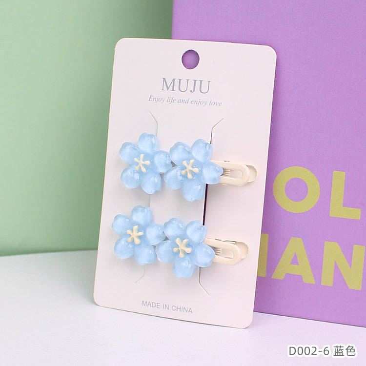 甜美樱花发夹精美2只对装发卡夹子少女花朵鸭嘴夹碎发前额刘海夹