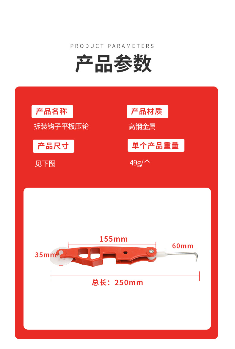 拆装钩子平板压轮 铝合金塑钢纱网拆装更换工具 可拆装压轮窗纱