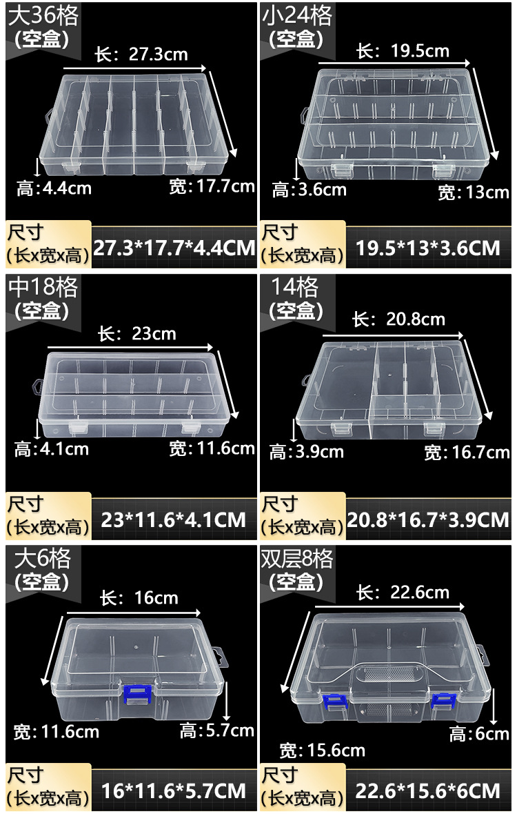 透明pp塑料收纳盒五金工具鱼钩螺丝防尘盒珠串首饰品整理储物盒
