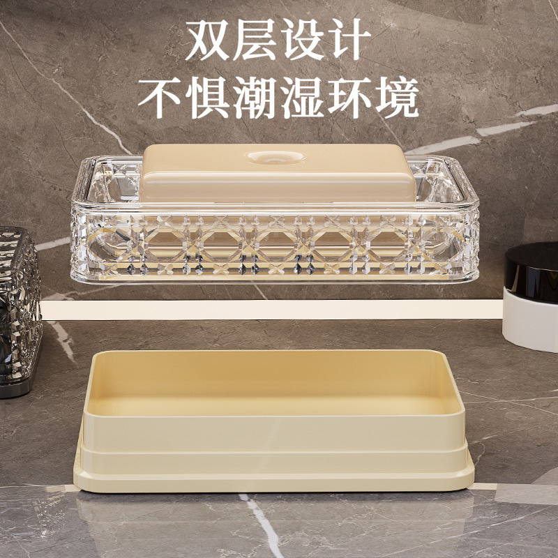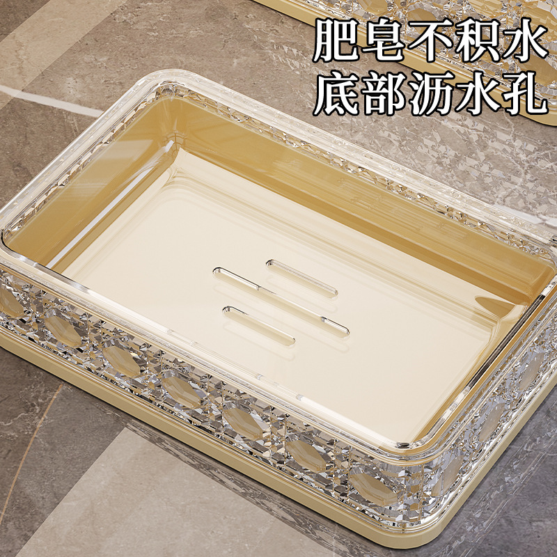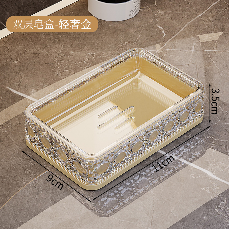 新款肥皂盒浴室卫生间免打孔家用轻奢藤格纹高档多层沥水香皂植物
