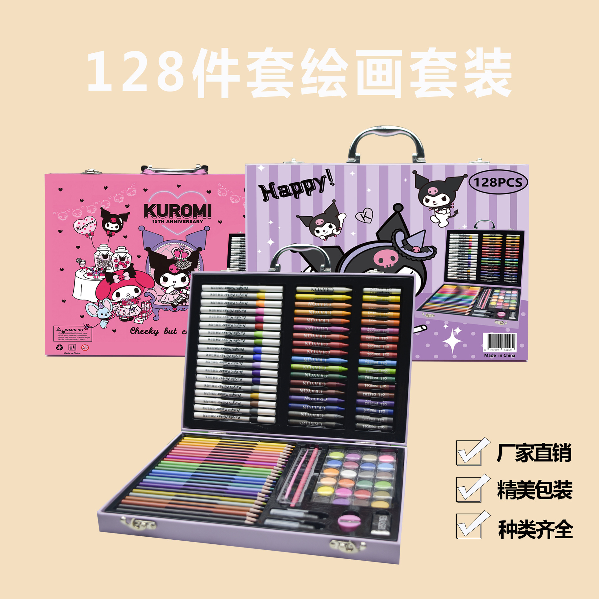 128pcs卡通文具套装小学生学习用品礼盒儿童绘画礼品水洗颜料