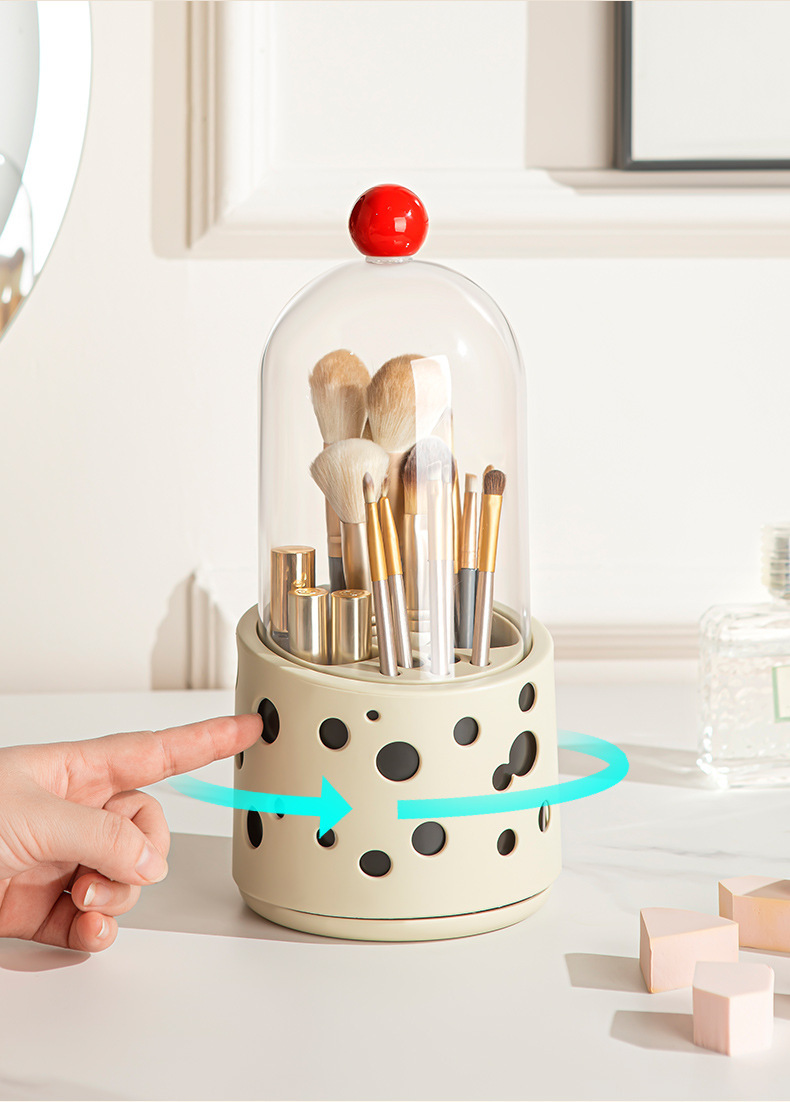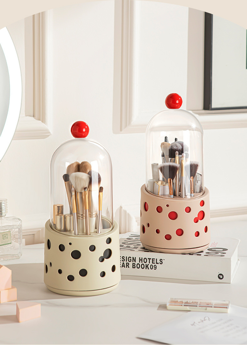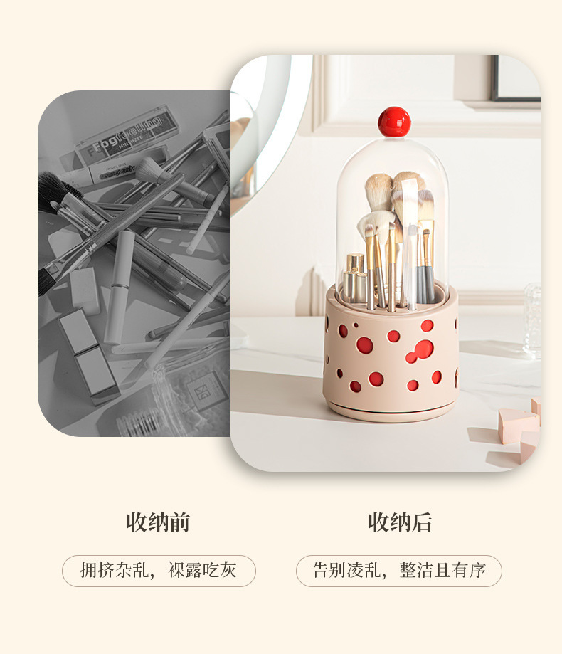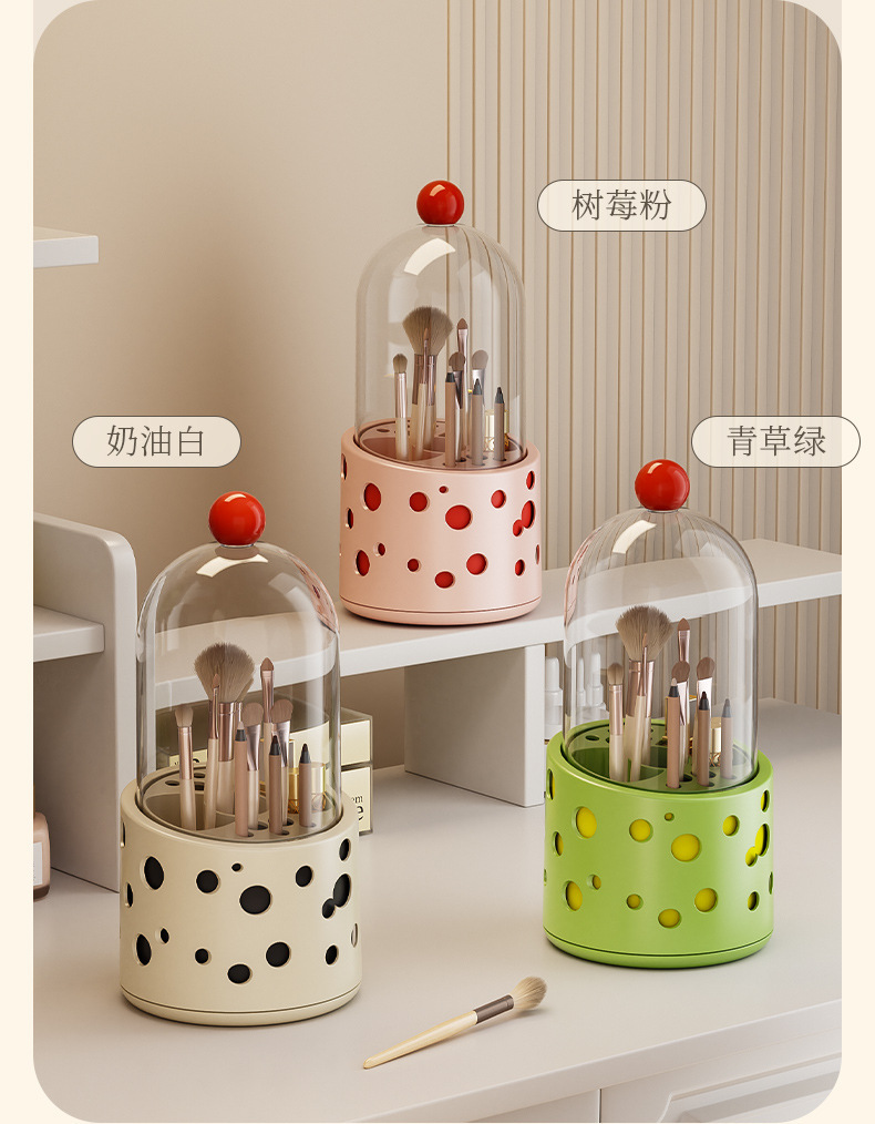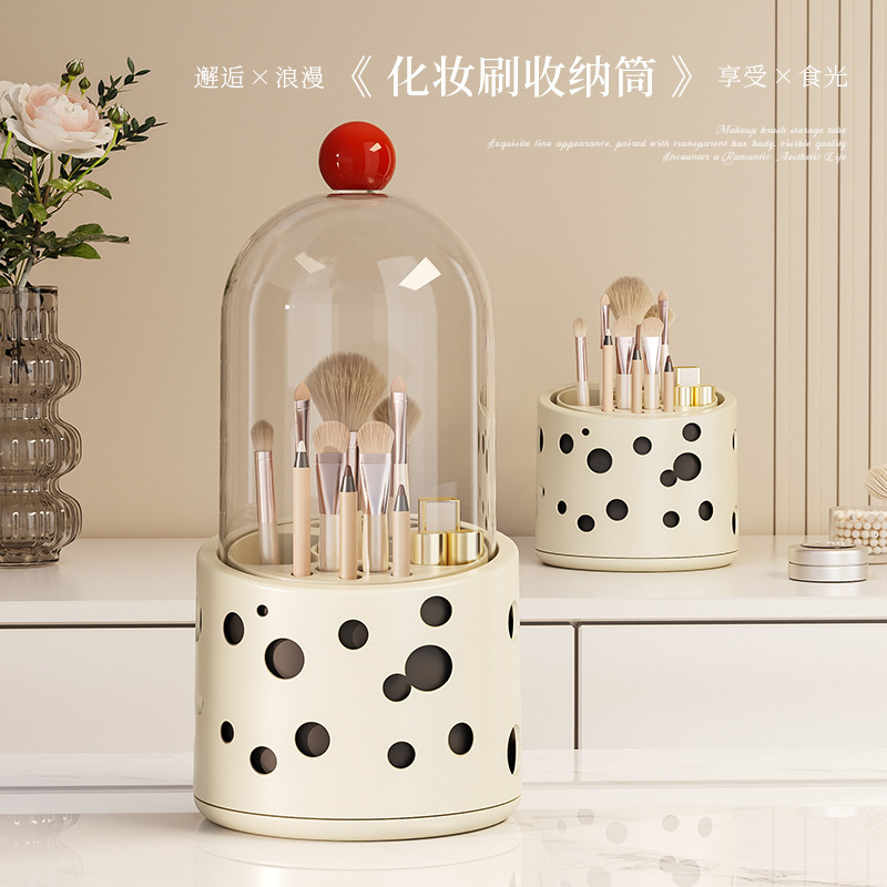 新款多巴胺化妆刷桌面收纳盒口红化妆品眉笔置收纳筒带盖防尘旋转