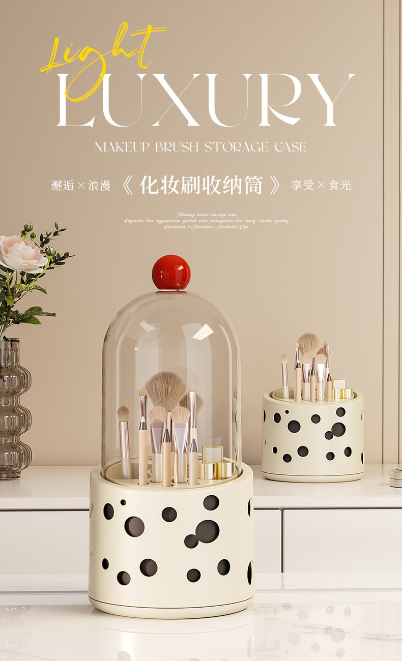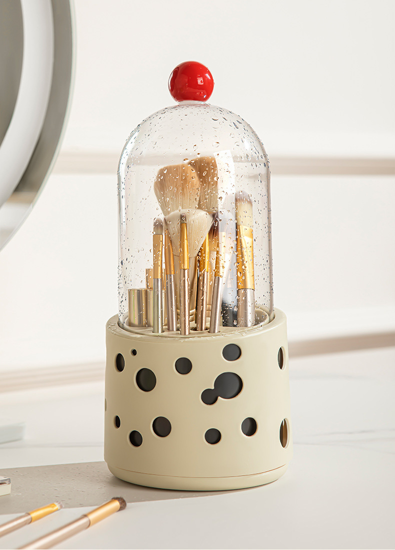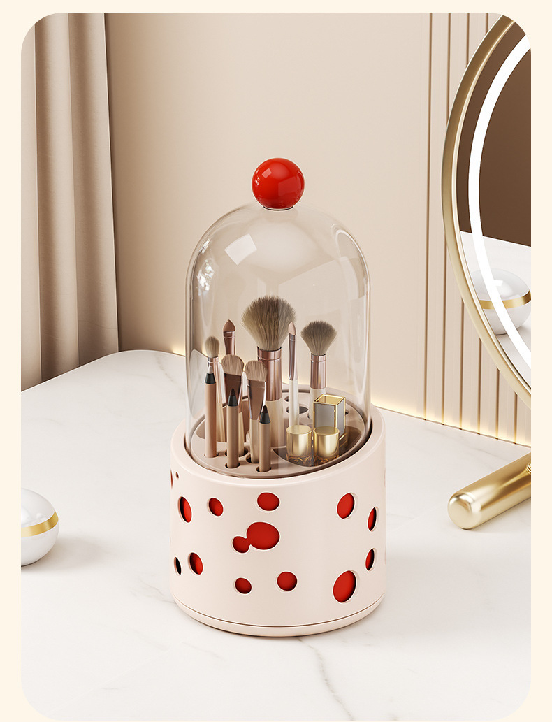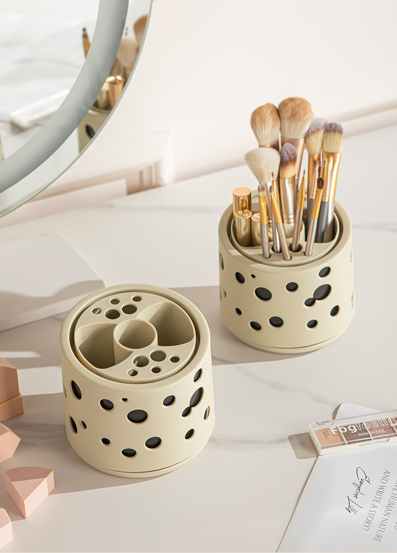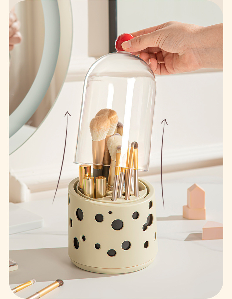新款多巴胺化妆刷桌面收纳盒口红化妆品眉笔置收纳筒带盖防尘旋转