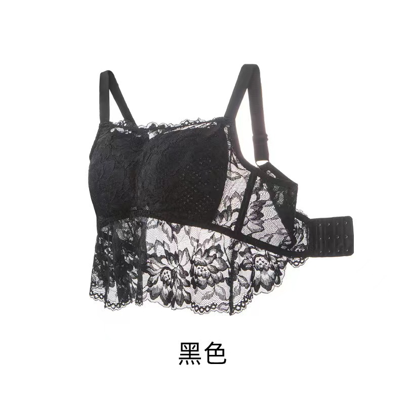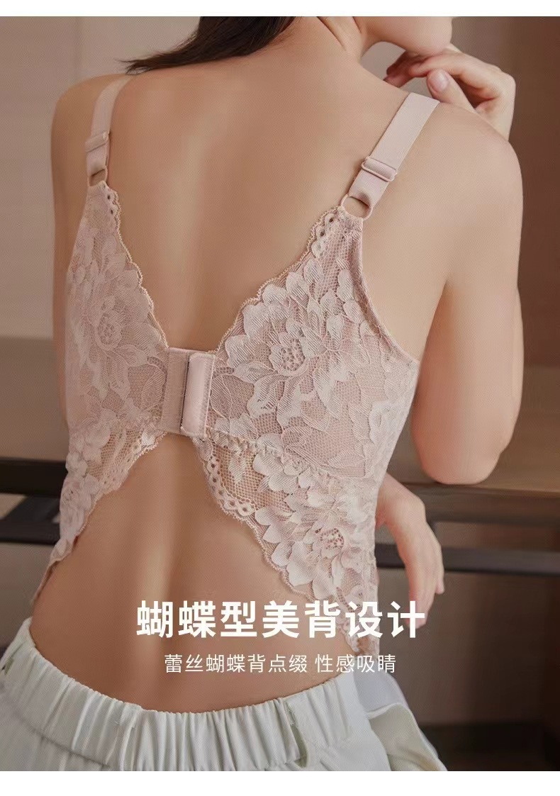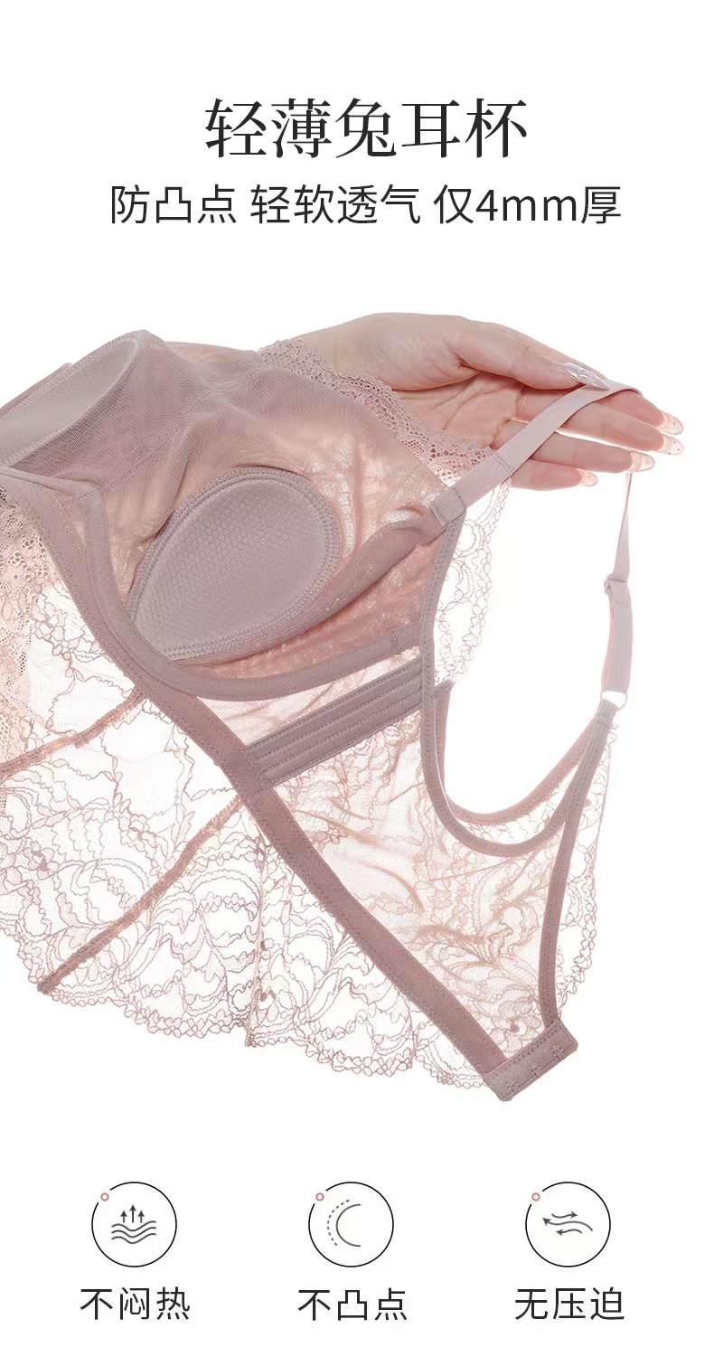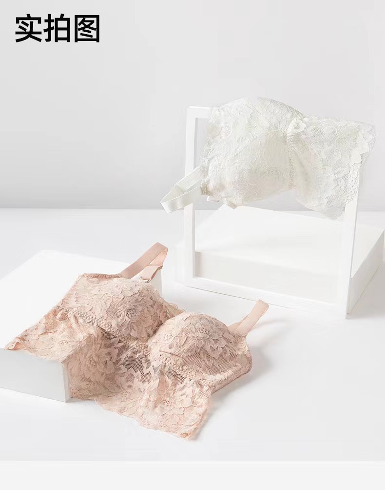 蕾丝无钢圈大胸显小女士内衣薄款舒适防下垂调整型吸汗美背文胸