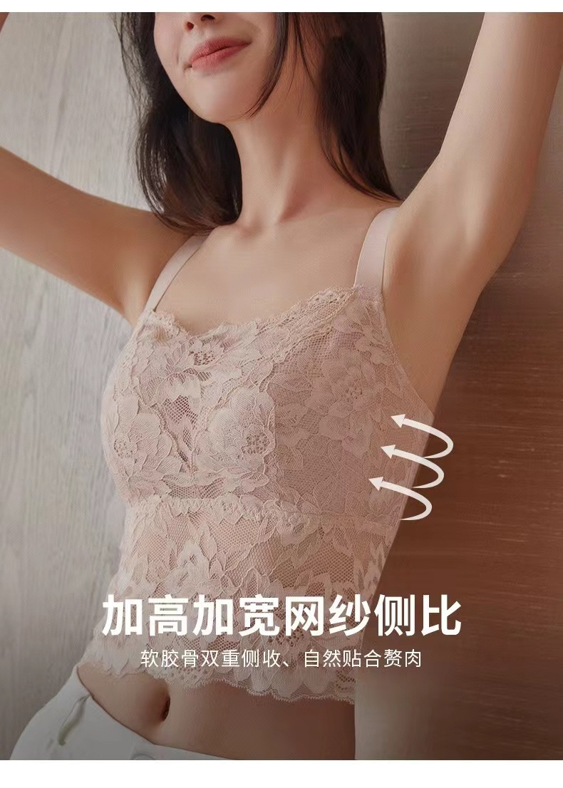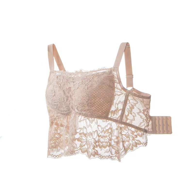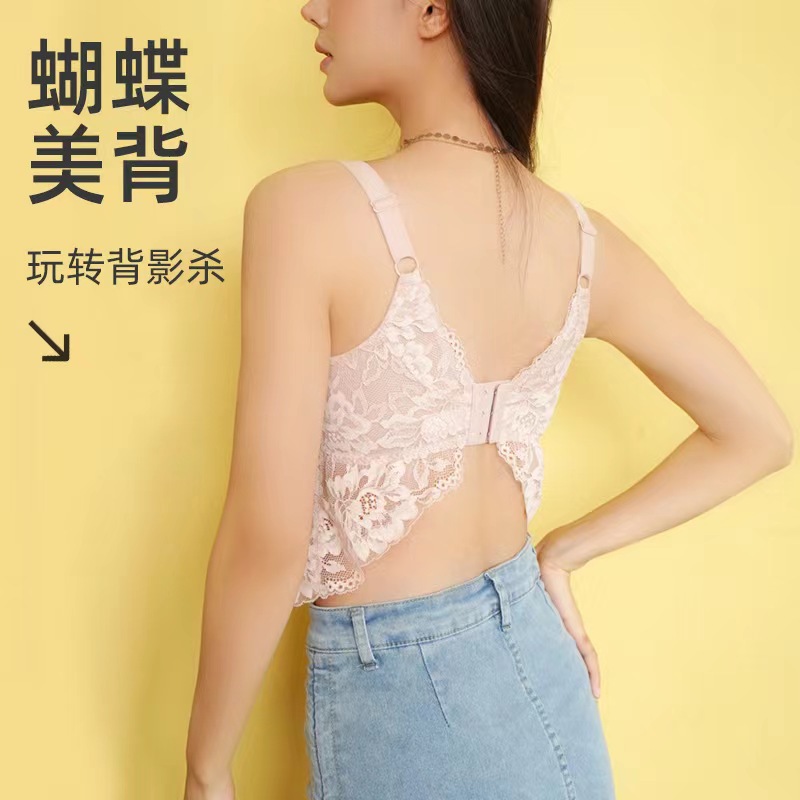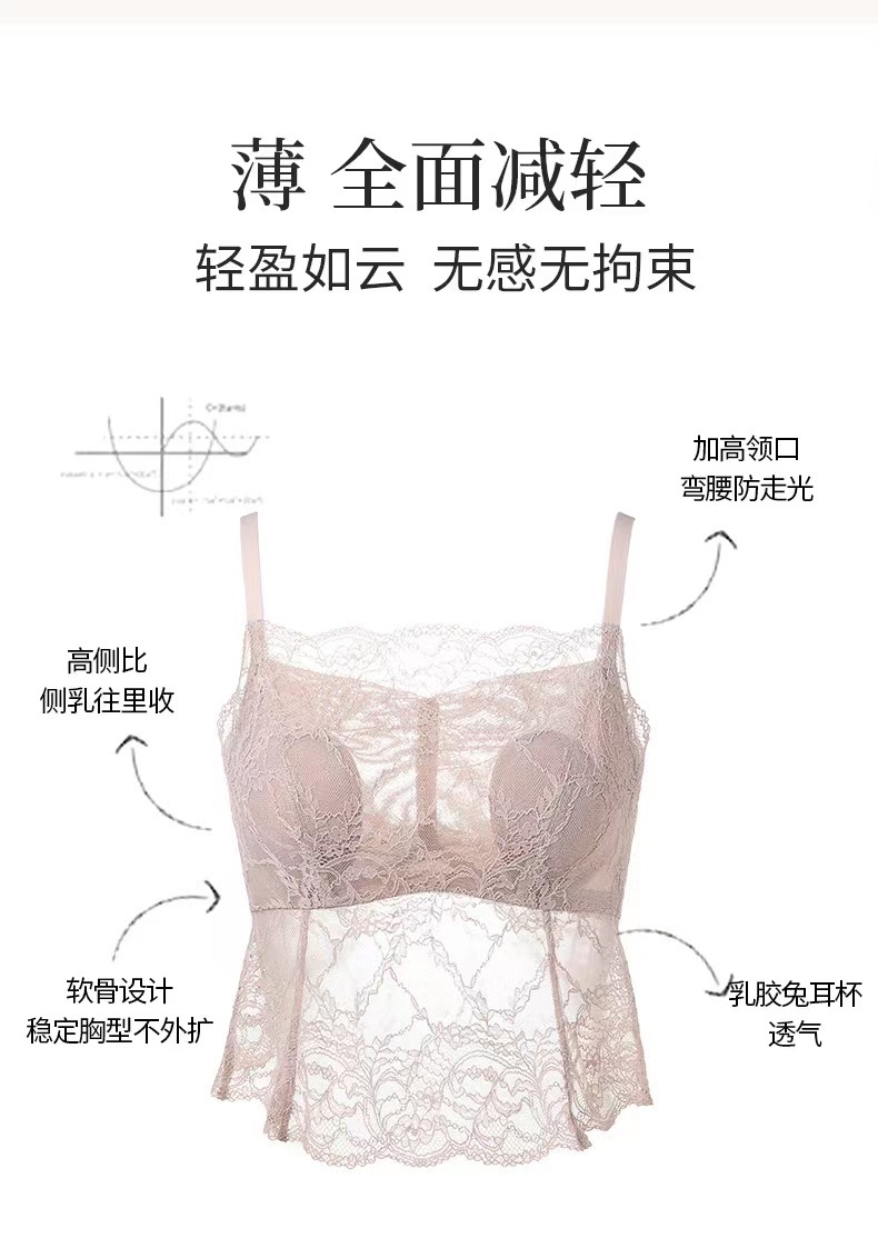 蕾丝无钢圈大胸显小女士内衣薄款舒适防下垂调整型吸汗美背文胸