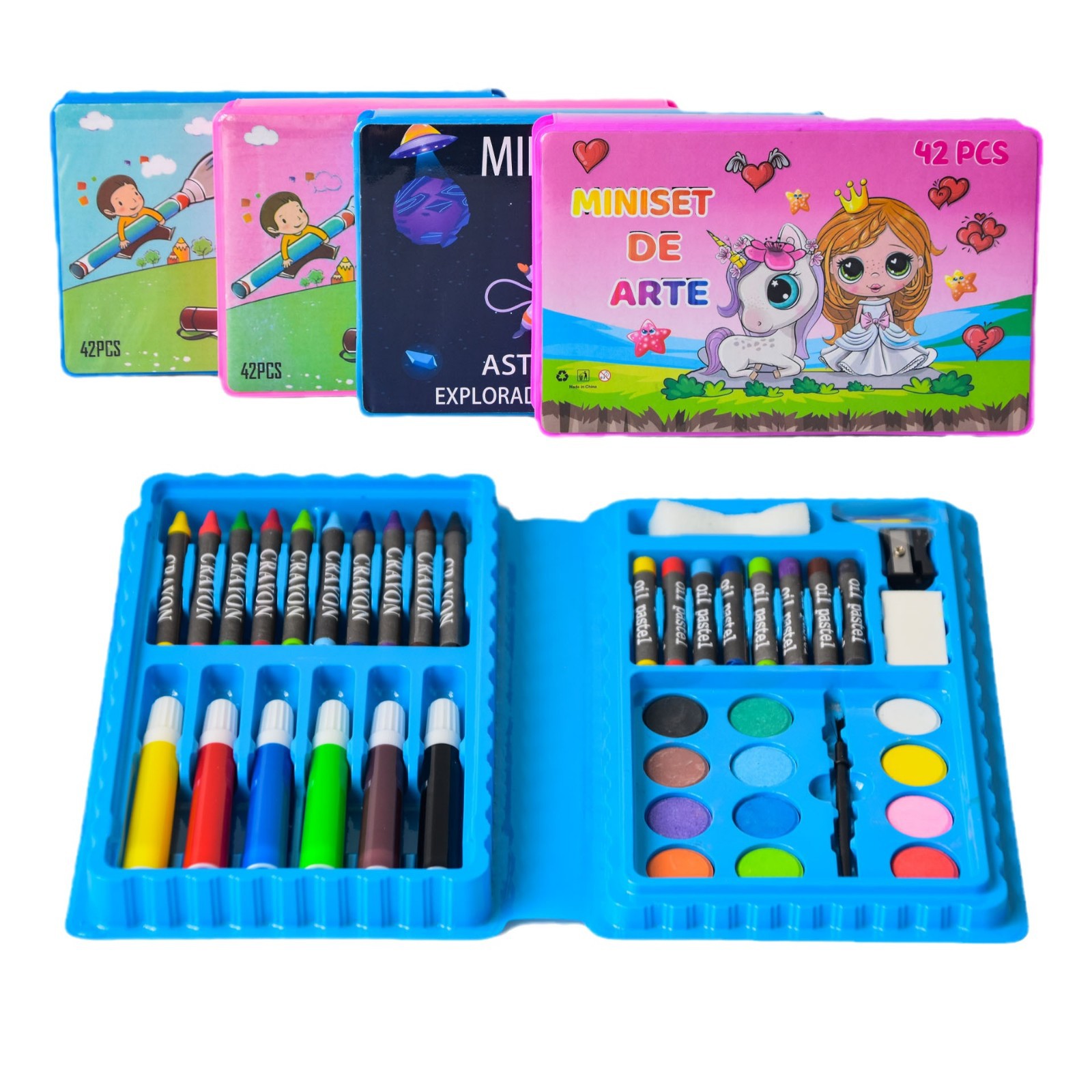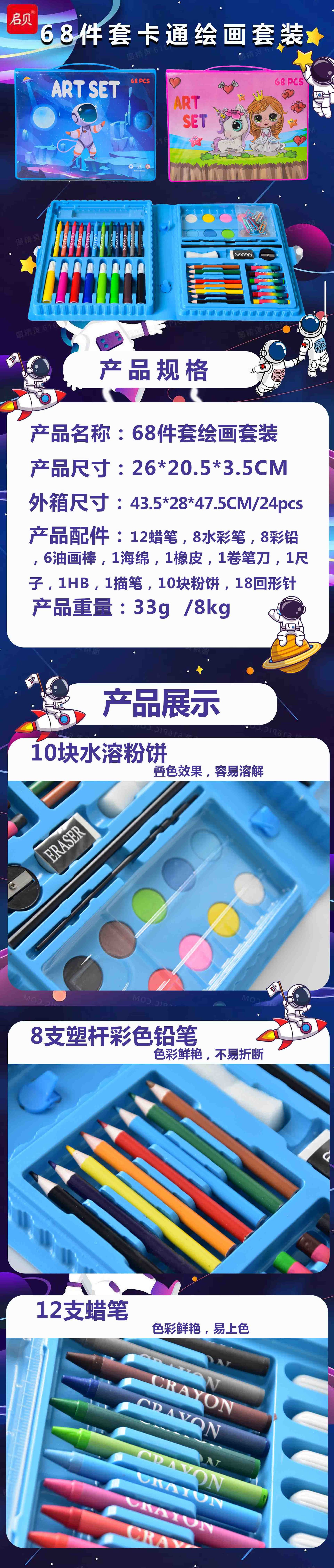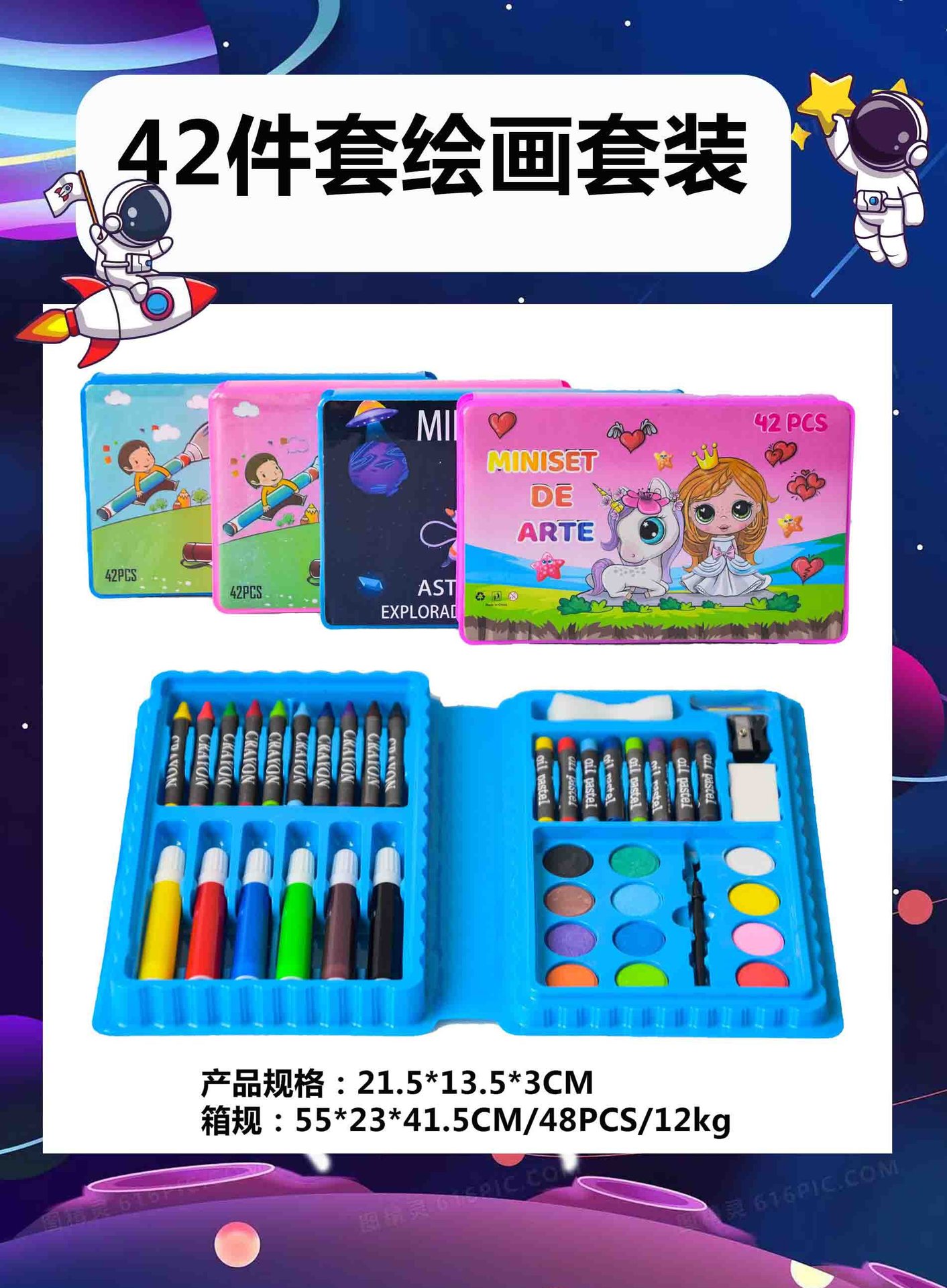 跨境专供42件套儿童画笔套装工厂直销水彩笔蜡笔铅笔礼盒创意