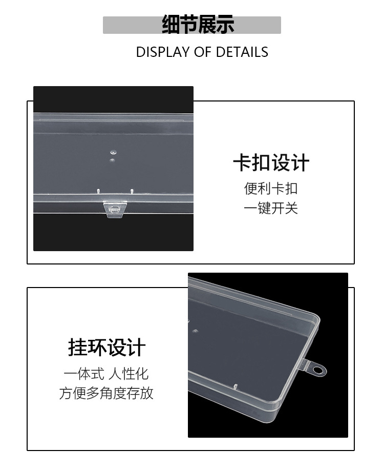 长方形透明塑料收纳盒PP空盒口罩首饰渔具五金工具样品盒电子元件