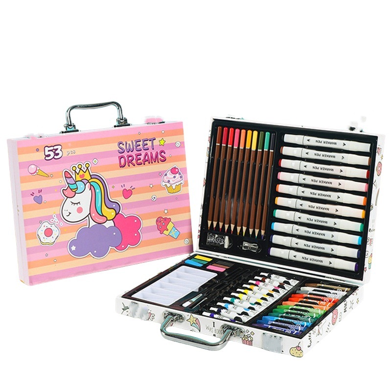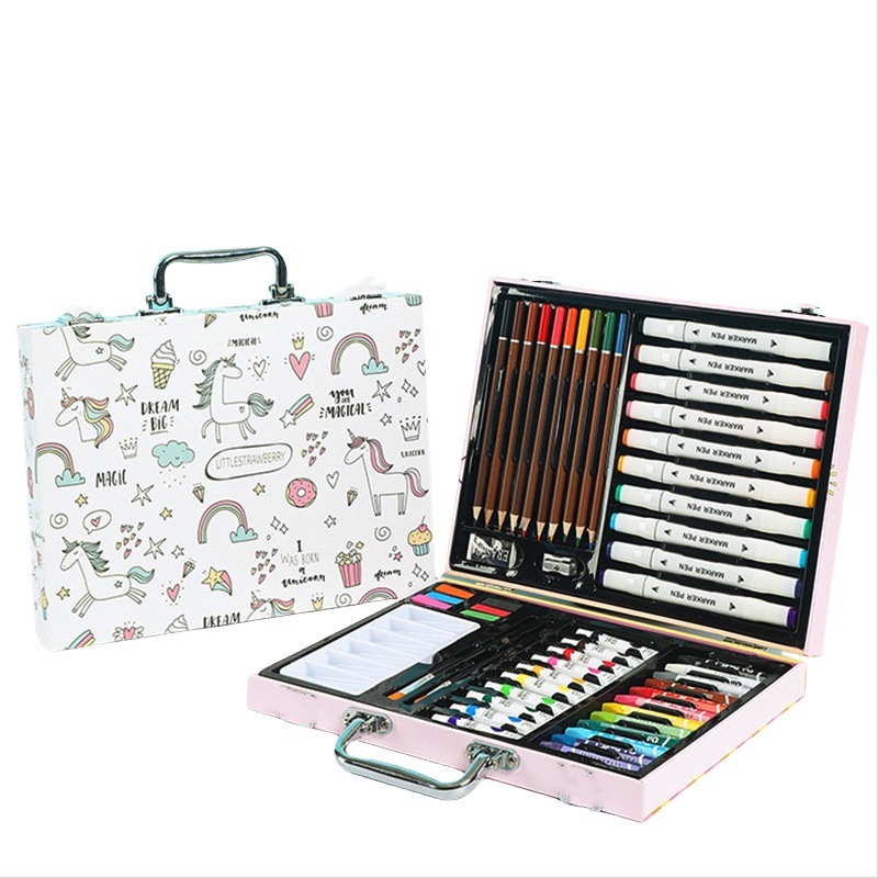 此款画笔套装为艺术而生,是一件实用并具有教育意义的礼物~含有:彩铅、马克笔、蜡笔、水彩块、辅助工具,可画出粗细多种线条,满足多种绘画体验,每个孩子都可以是小小艺术家~