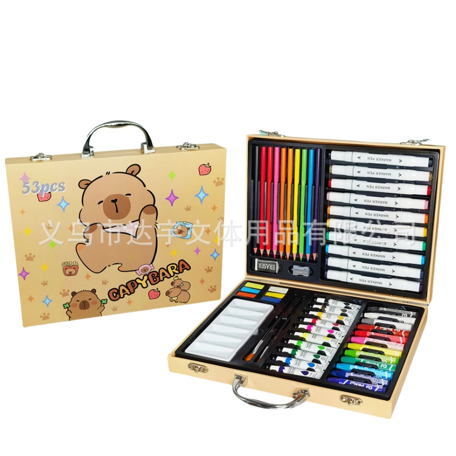 动物王国53件套水彩笔儿童绘画套装画笔马克笔油画棒套装彩笔批发