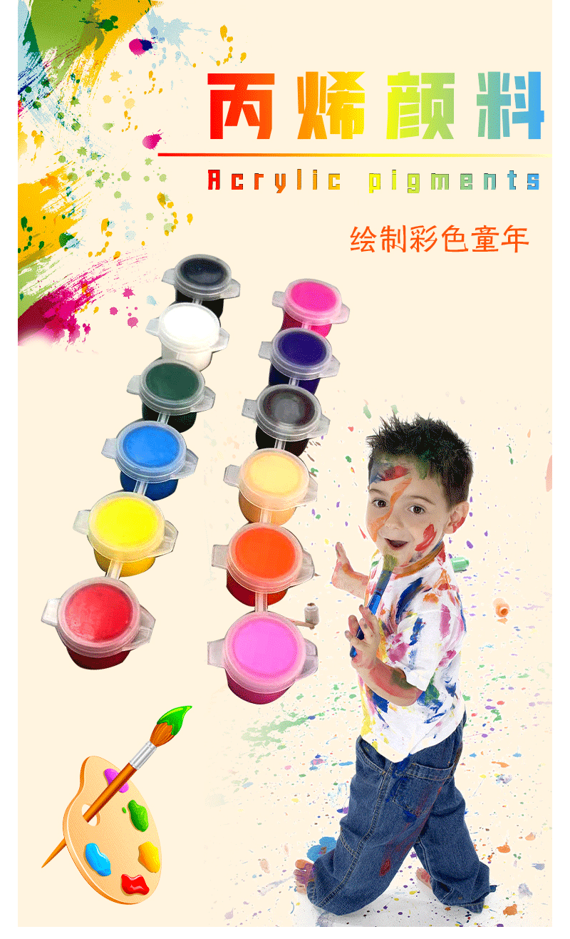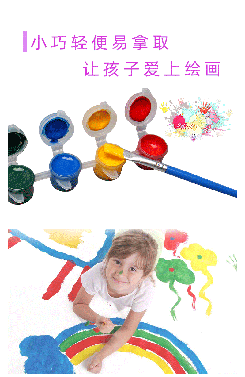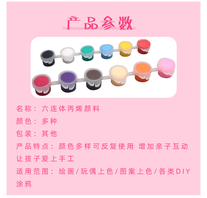 儿童丙烯颜料12色套装 6连体幼儿园学生美术画画涂鸦diy石膏颜料