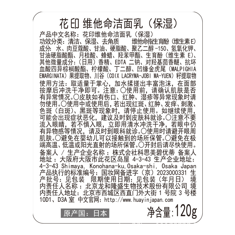 花印维他命洁面乳 去角质 洗面奶 女男保湿清洁进口洁面乳