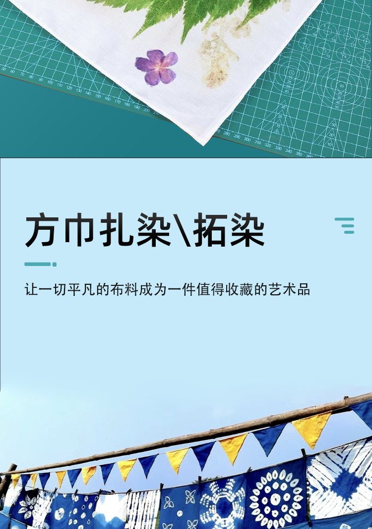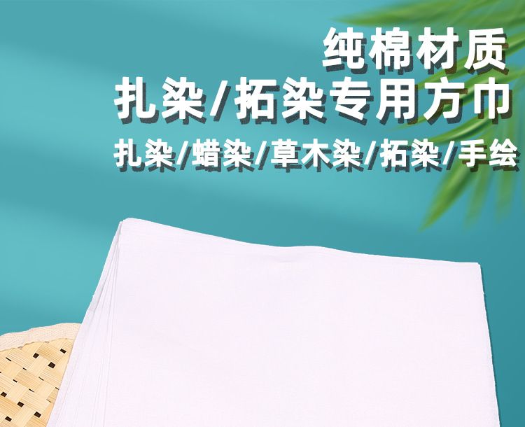 纯棉扎染布拓染白色小方巾手帕儿童学生幼儿园树叶拓染全棉布方巾