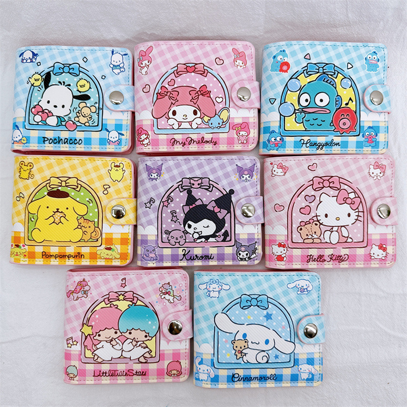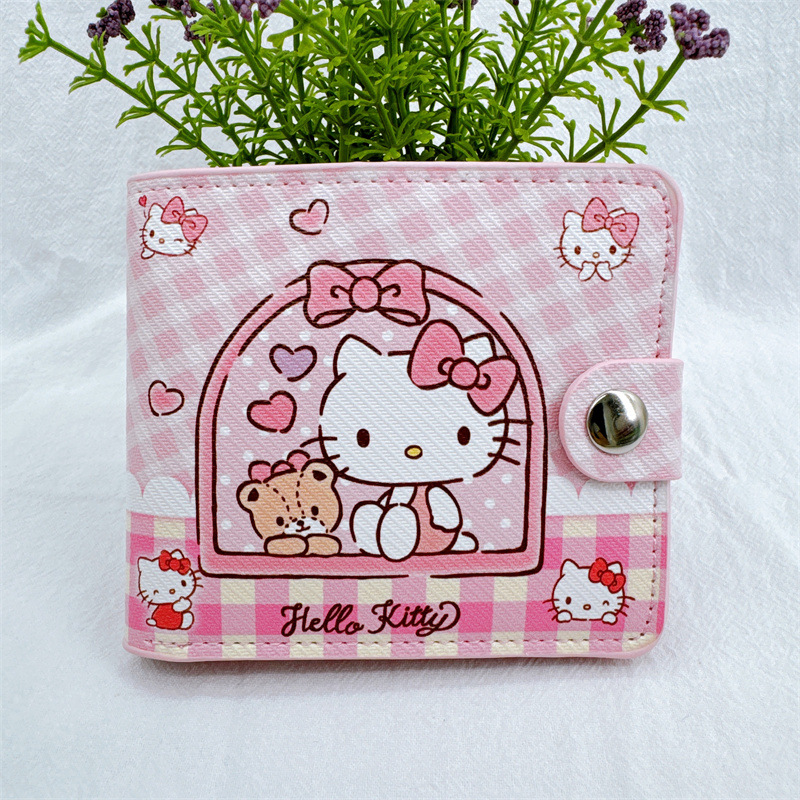 新款PU休闲短款2折钱袋KT PC狗 库鲁米硬币钱包卡包皮夹带纽扣