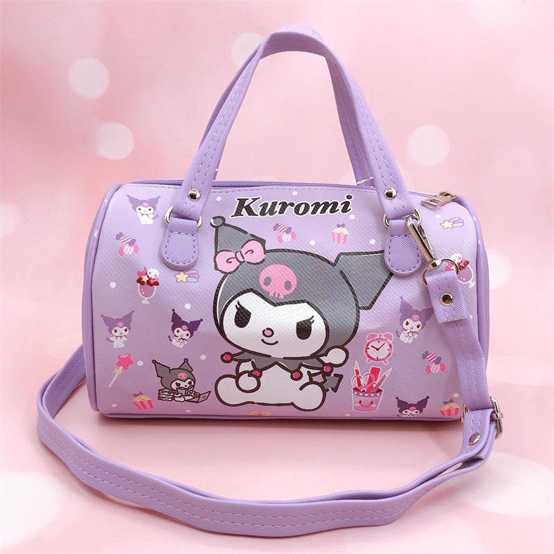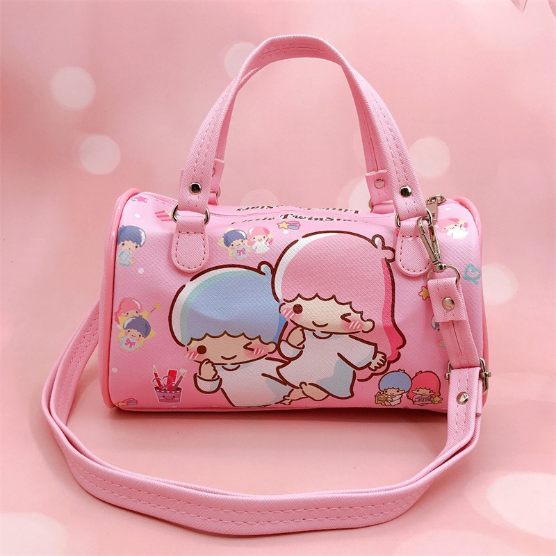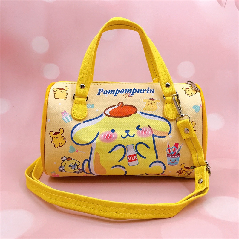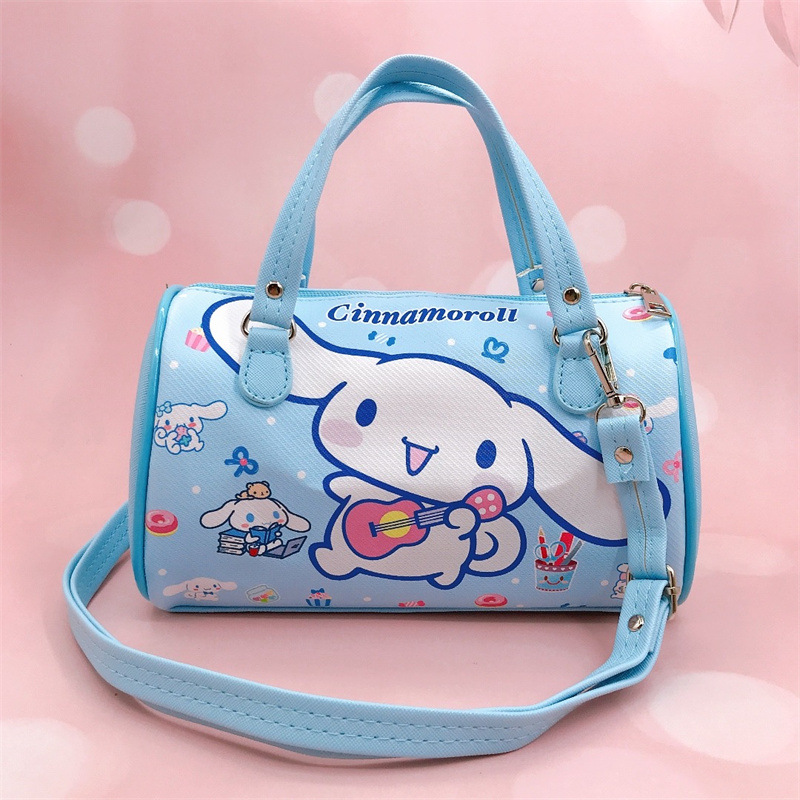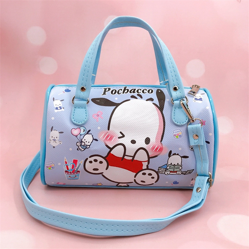 卡通PU防水横款圆筒手拎斜挎两用包小白狗帕恰狗皮革大容量包包