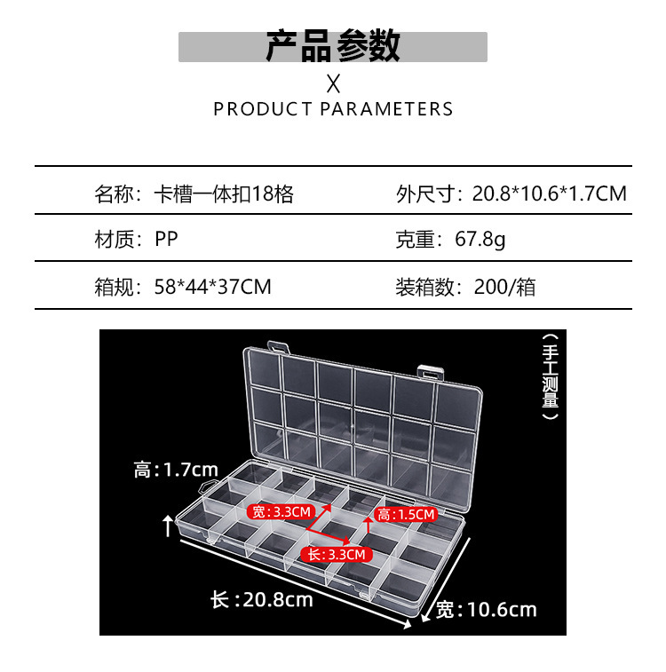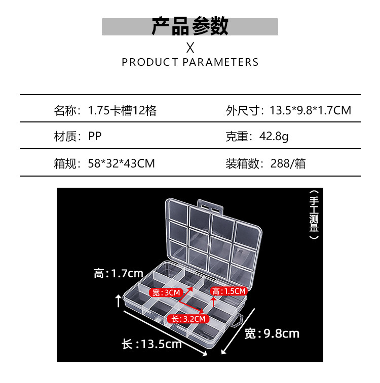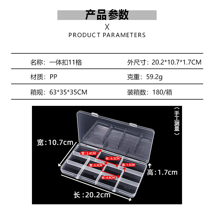 亚马逊固定塑料分格盒五金工具辅料蜡粒饰品盒长方形透明收纳盒