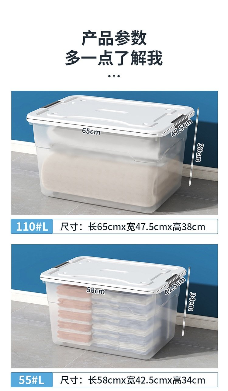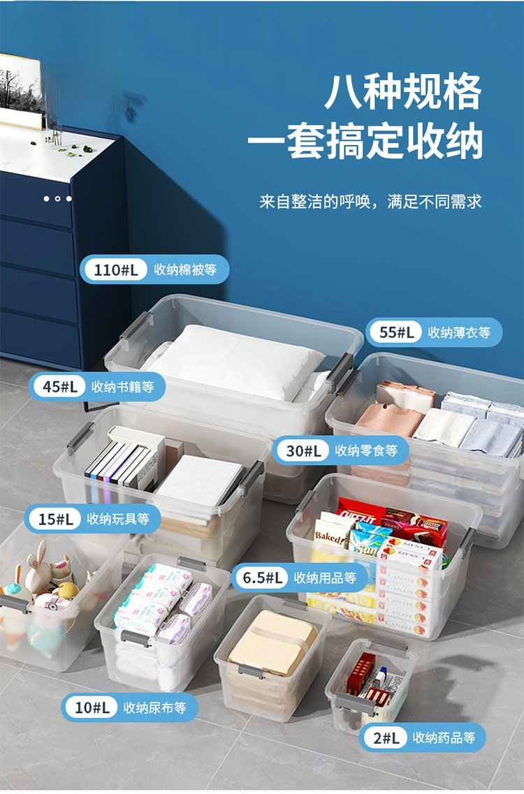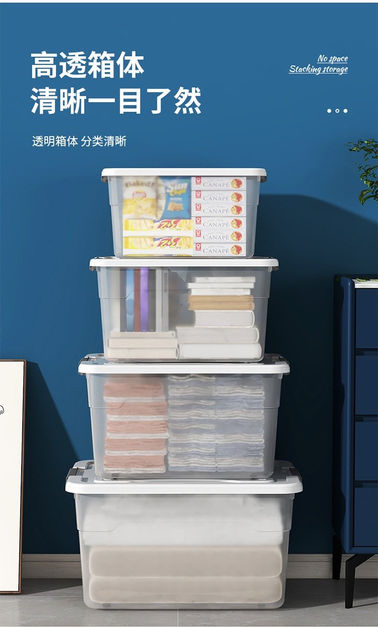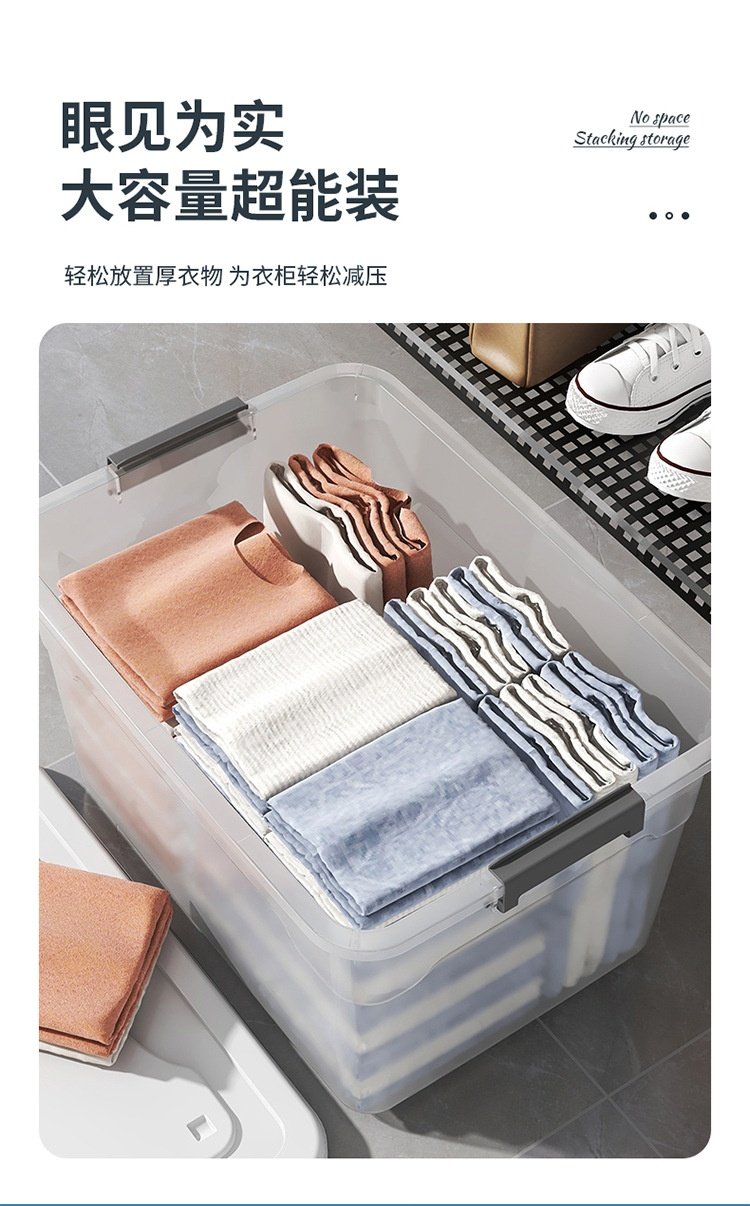塑料透明收纳箱带盖家用衣服衣物收纳箱子超大号储物整理箱收纳盒