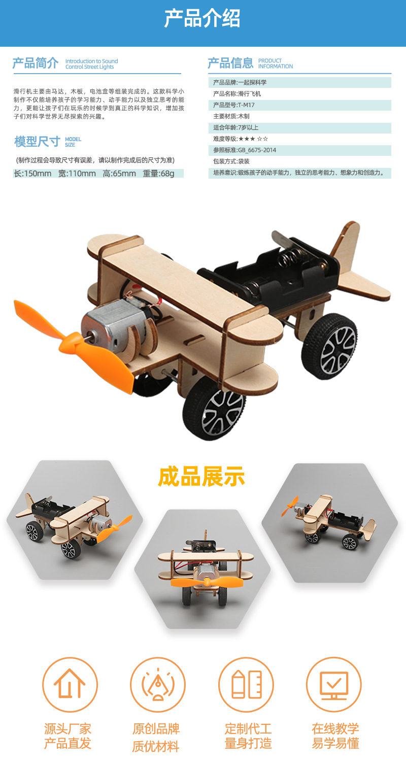 科技制作小发明儿童自制实验滑行飞机科学小制作手工diy玩 具材料