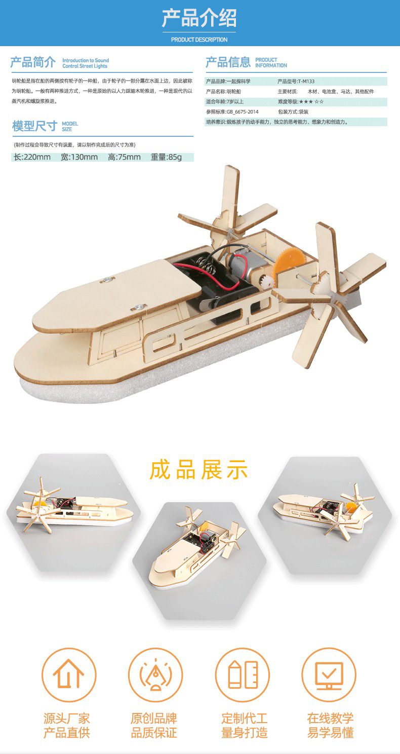 科技小制作小发明diy手工材料包 明轮船 科学实验steam小学生教具
