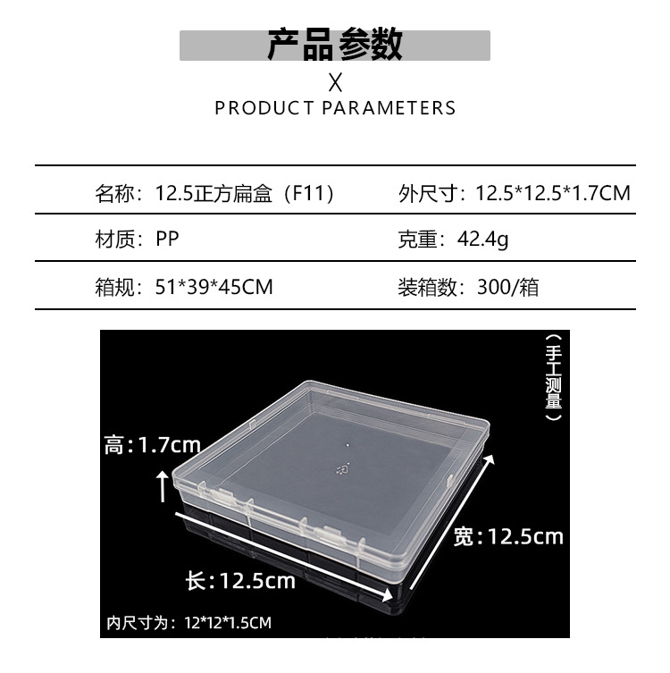 12.5正方形扁盒 透明塑料翻盖包装盒 桌面卡片储存盒 饰品收纳盒