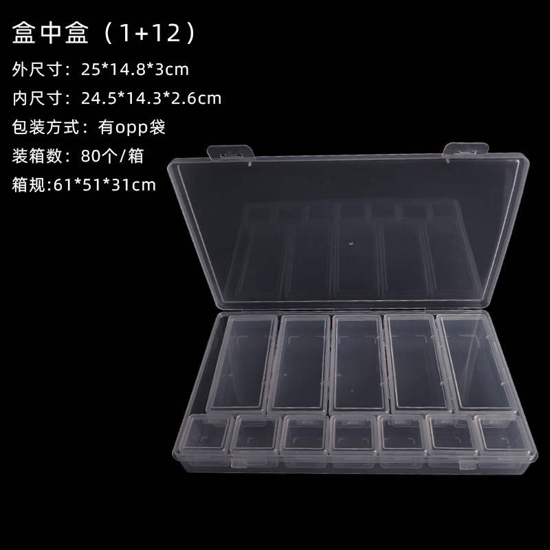 独立格子翻盖套盒收纳盒DIY饰品手工材料包装储物盒透明塑料盒