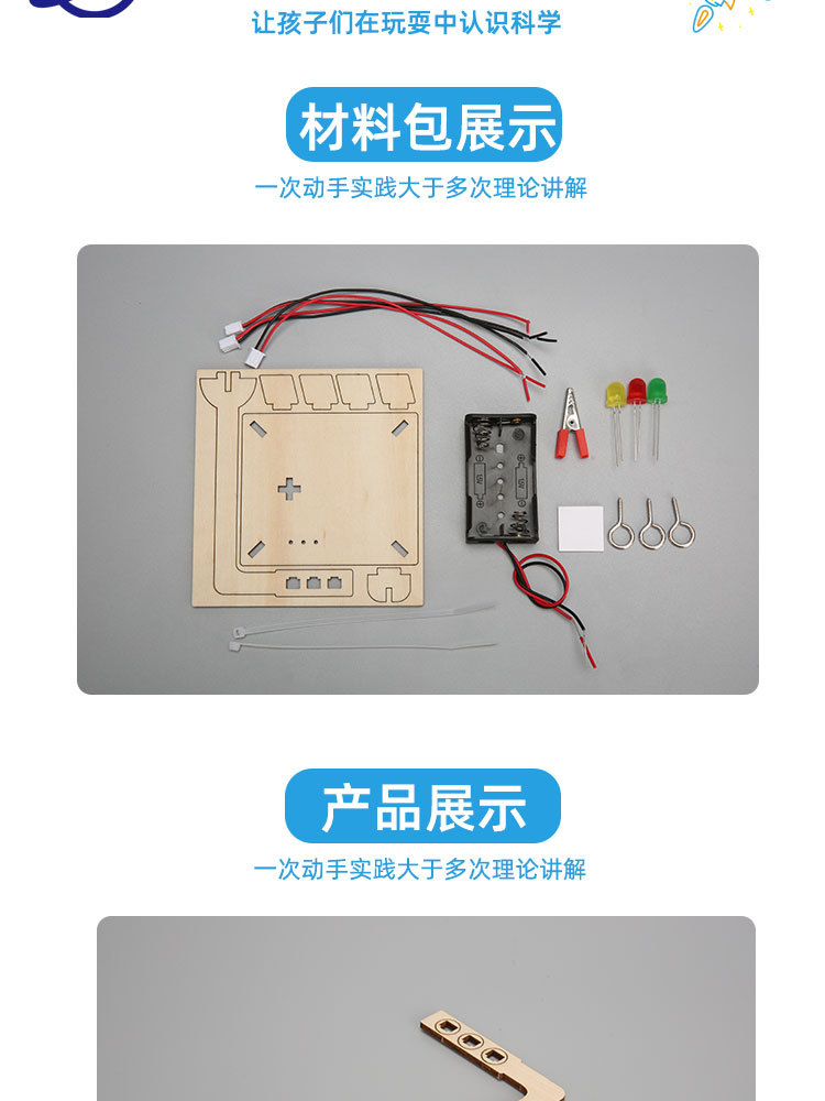 红绿灯科技小制作 木质diy幼儿园学生手工玩具材料科学实验玩具