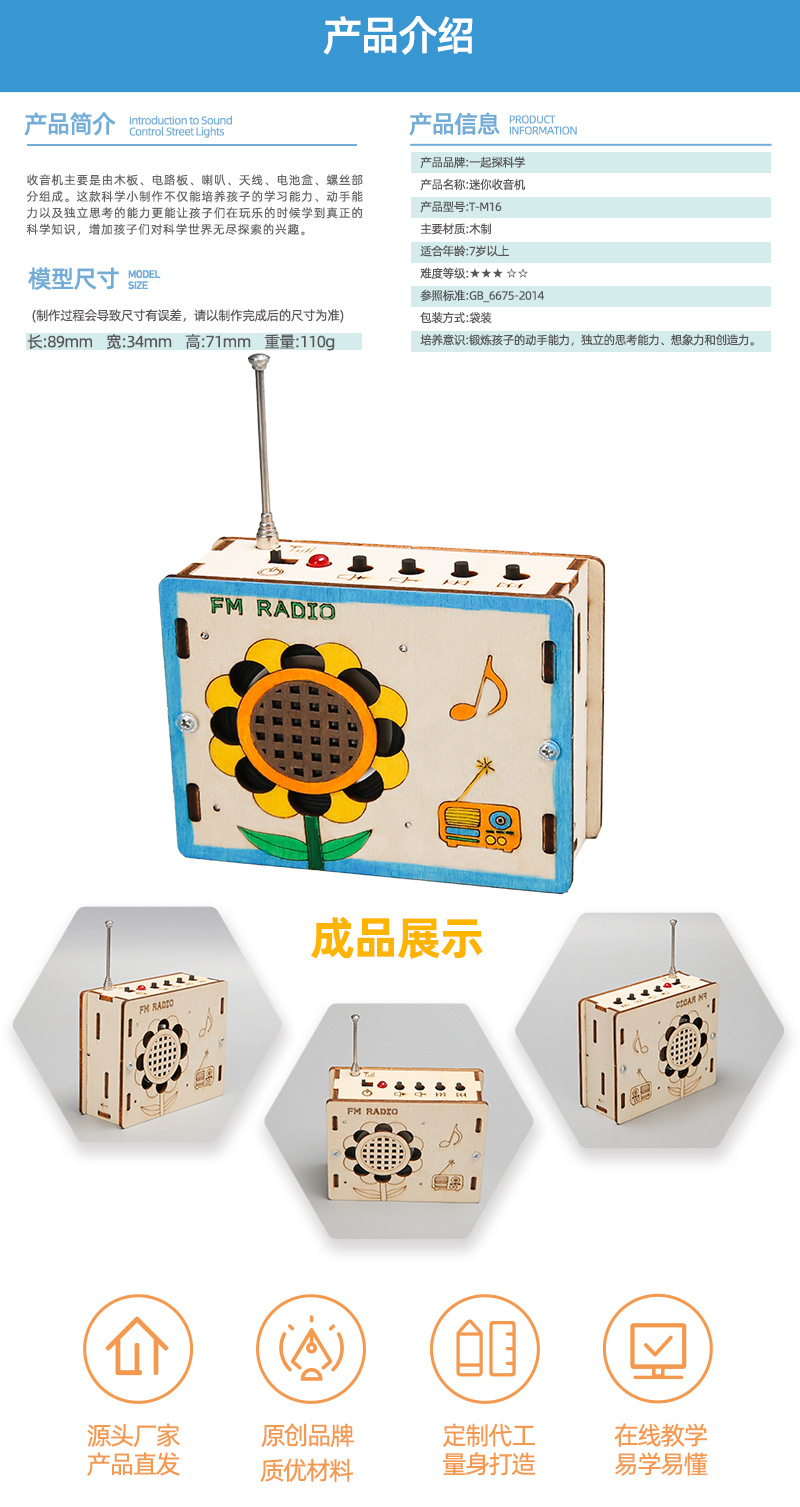 科学实验儿童迷你收音机木质科技小制作小学生diy手工拼装教玩具