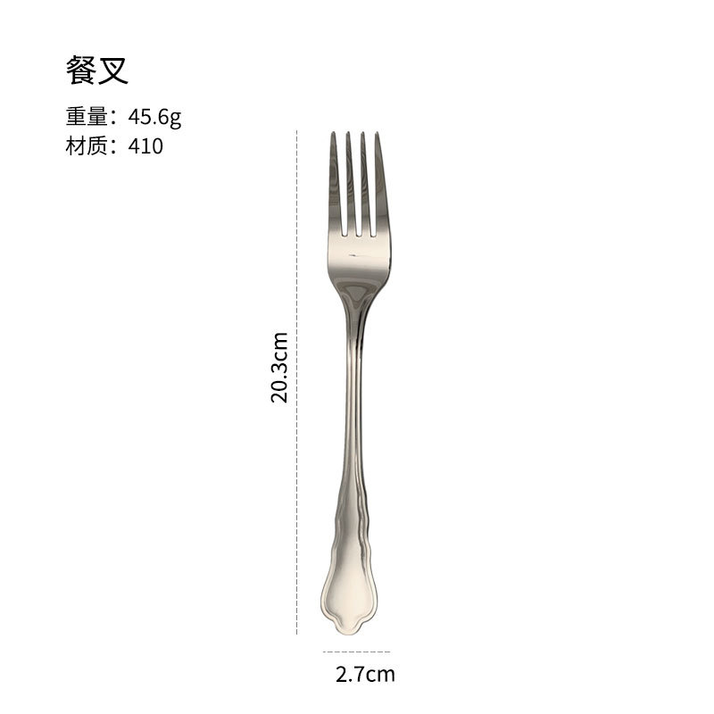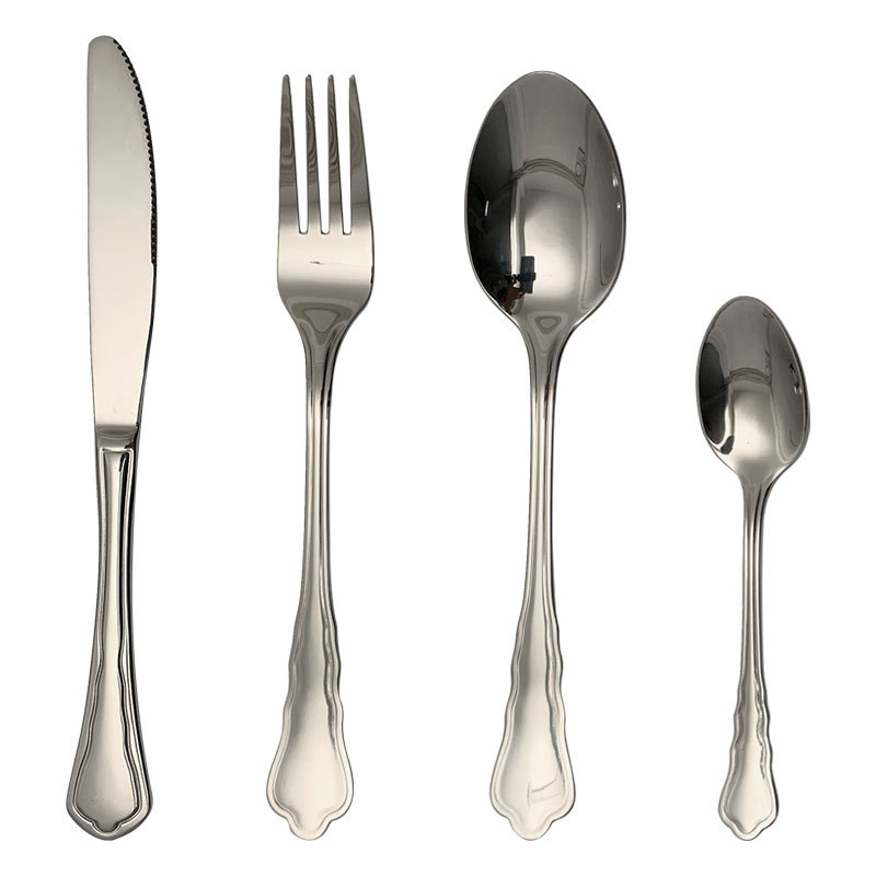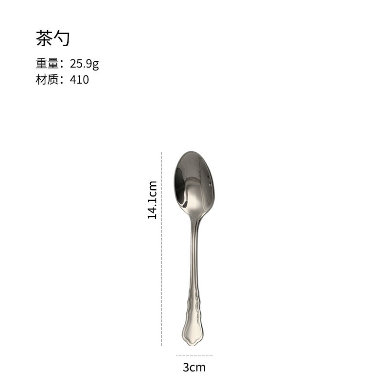 不锈钢刀叉勺创意花边酒店西餐厅牛排刀叉勺咖啡甜品搅拌勺四组件