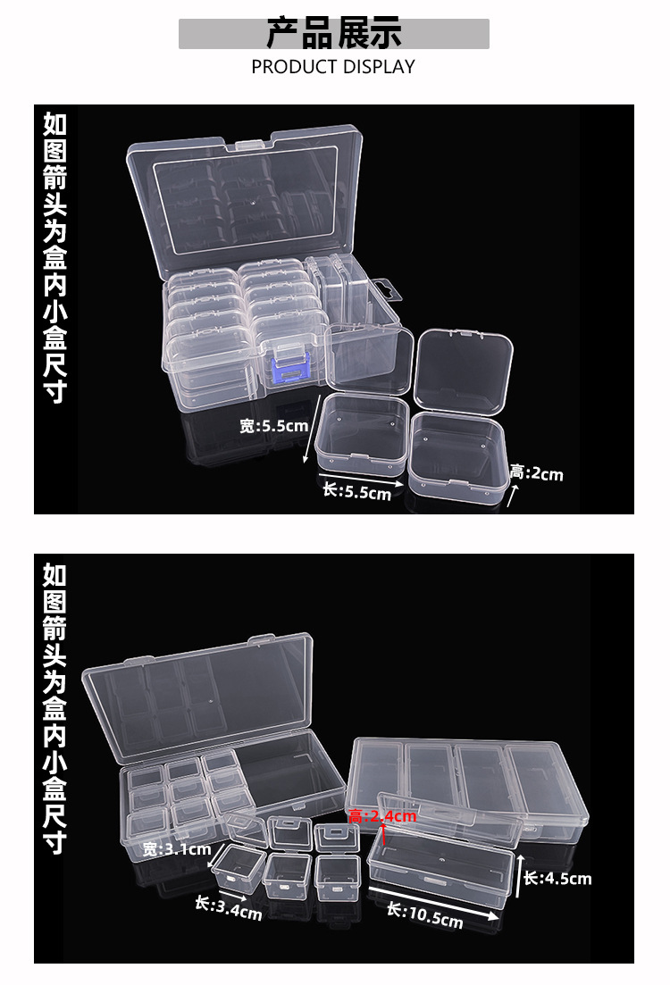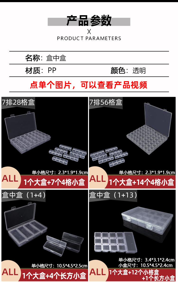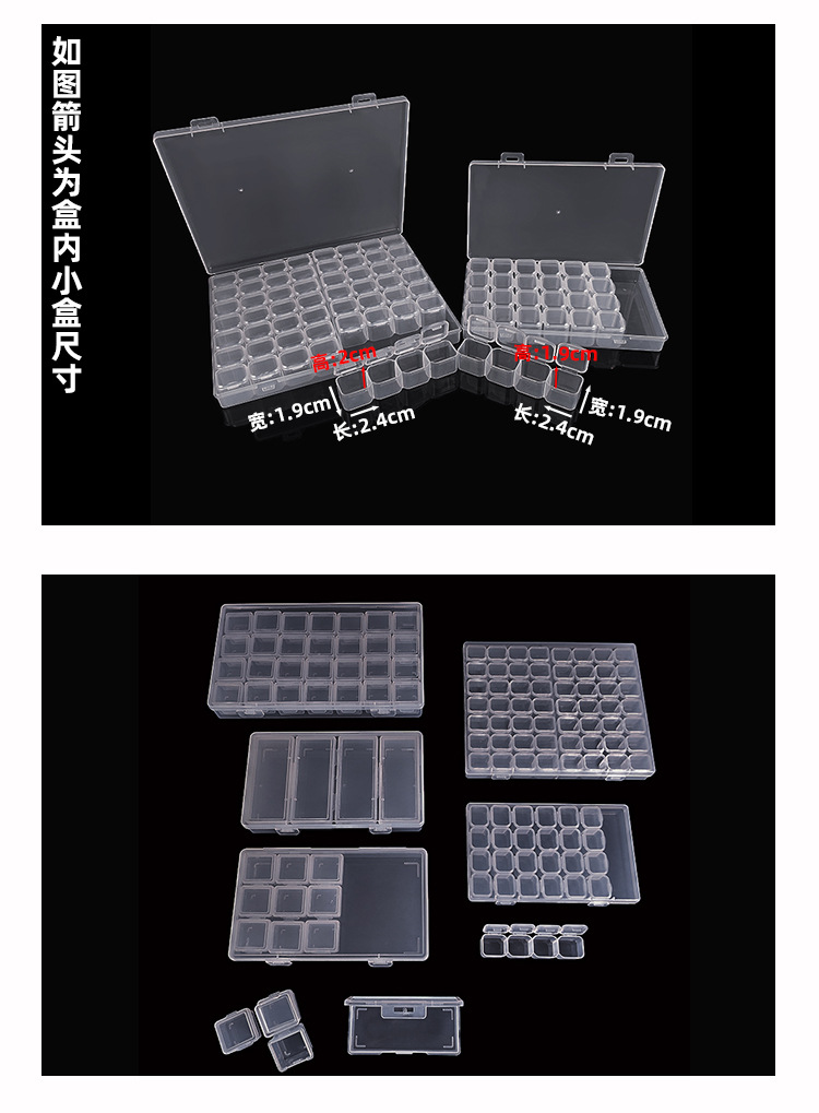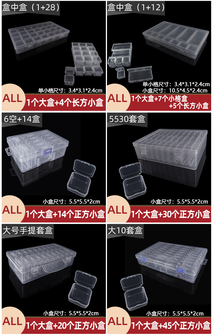 新品 套盒透明塑料收纳盒米珠钻石工具盒小配件储物盒可组装盒子
