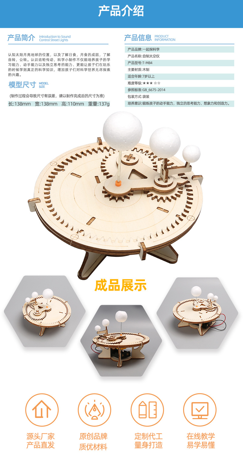 diy科学实验太阳地球月亮木质自制太空仪行星模型天文展示教玩具