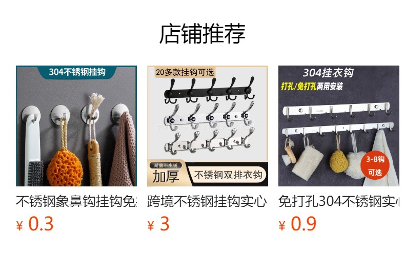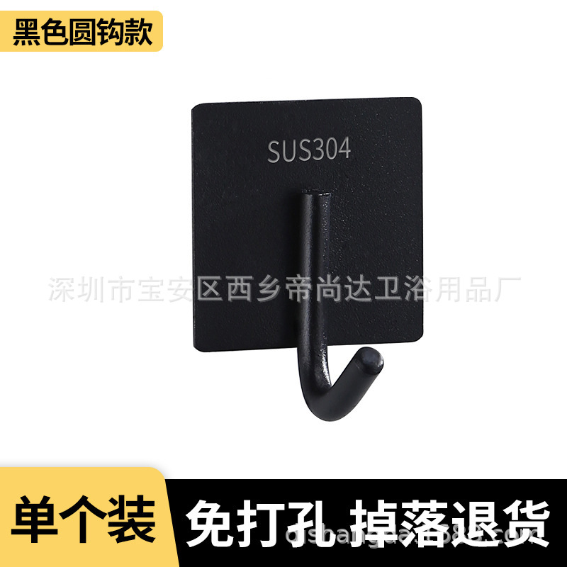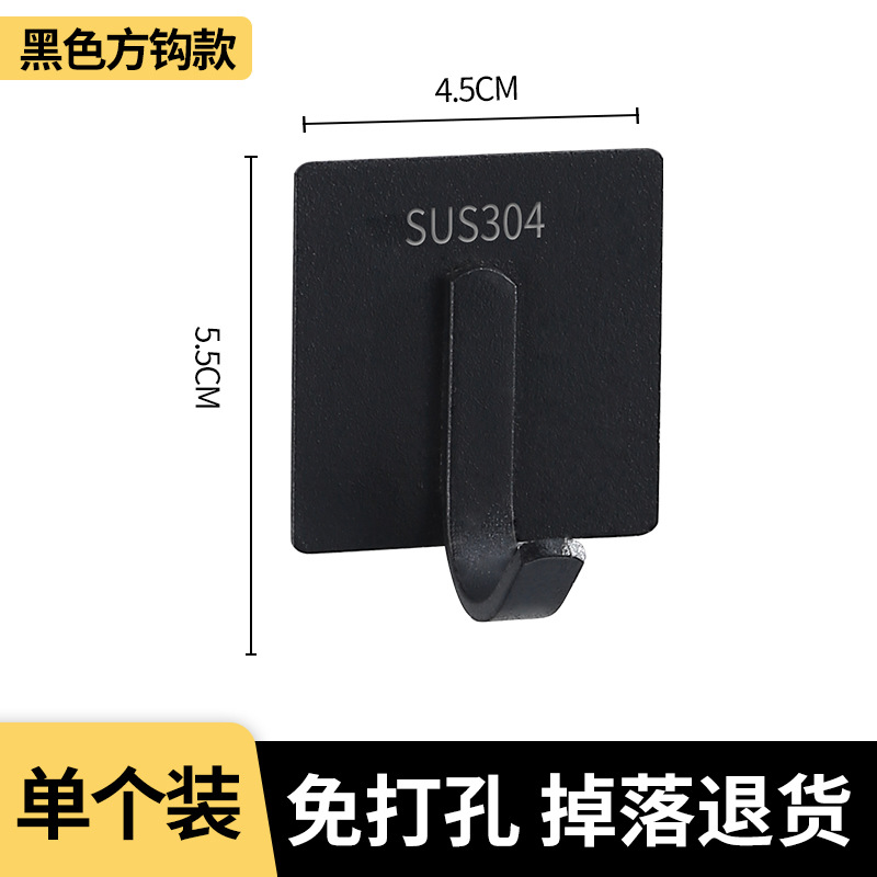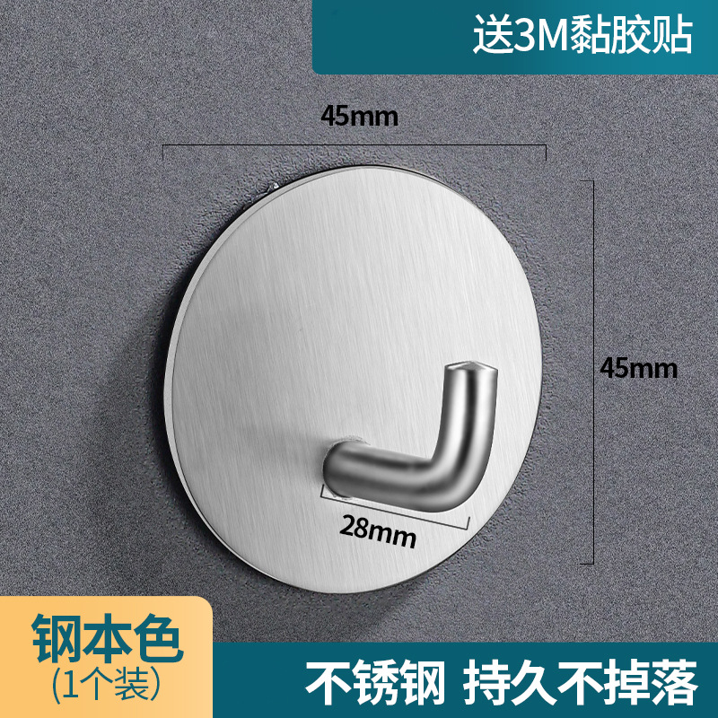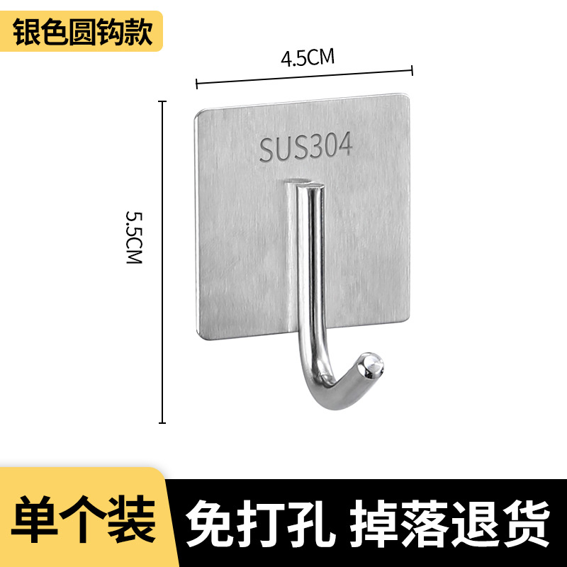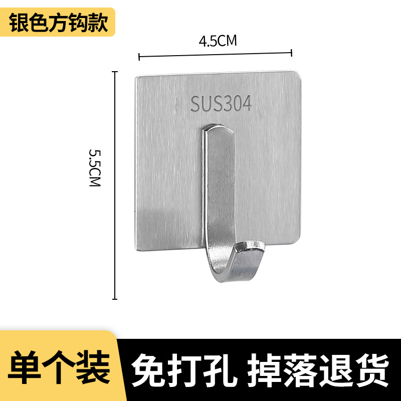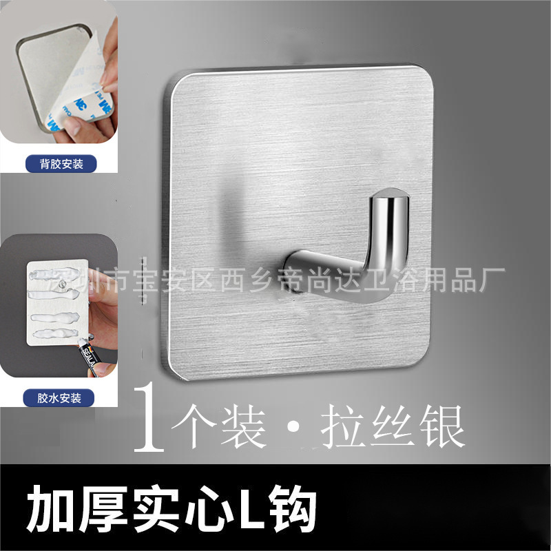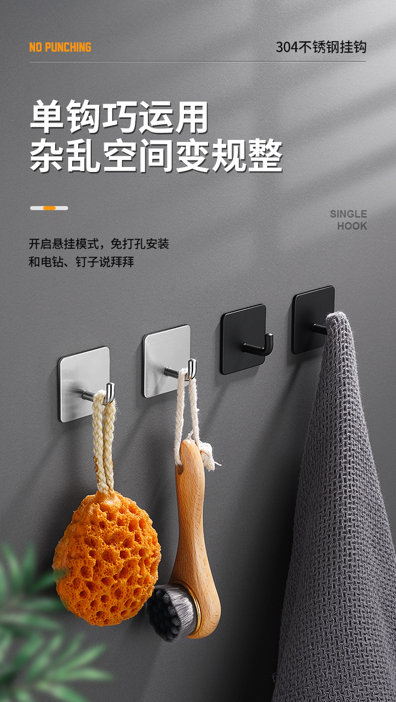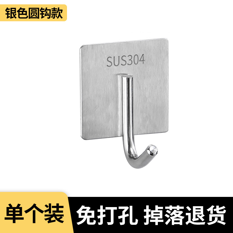 跨境不锈钢挂钩免打孔门后粘钩浴室衣服金属挂衣钩厨房收纳单钩