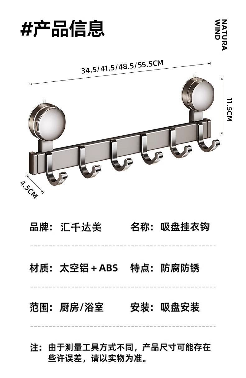 | 奶白吸盘太空铝排钩-8钩 | USD $2.47 | 9971 piece available |