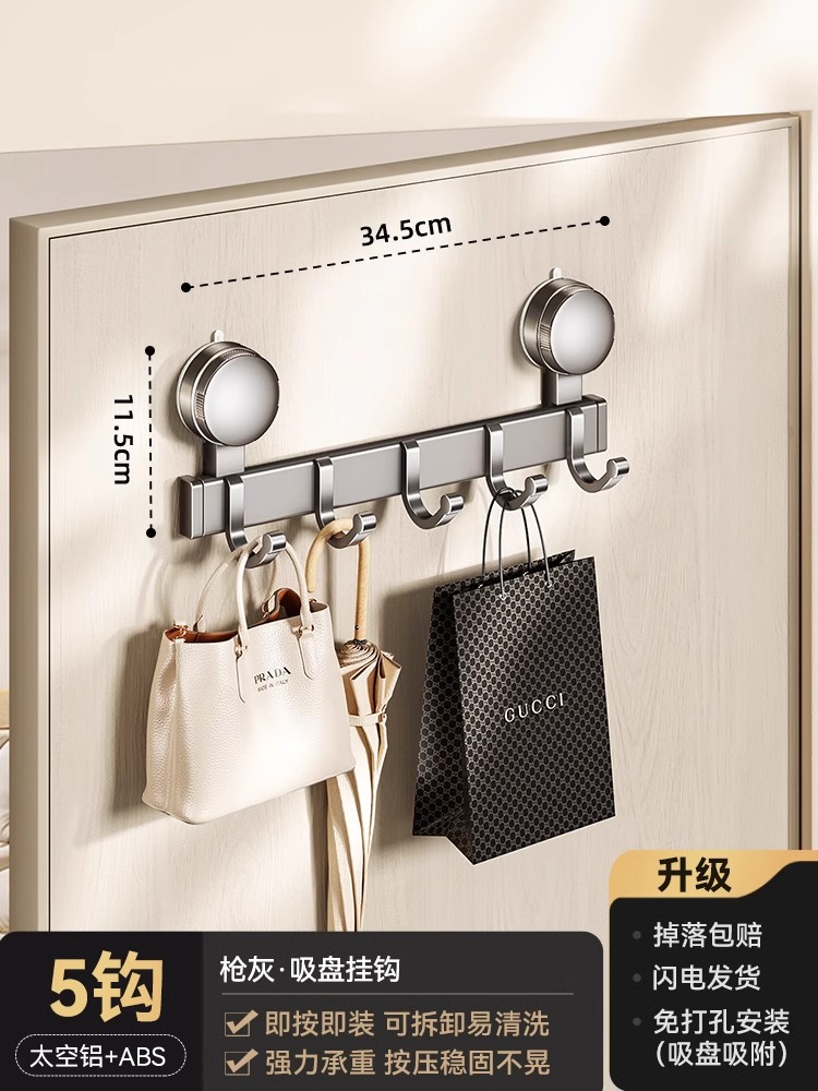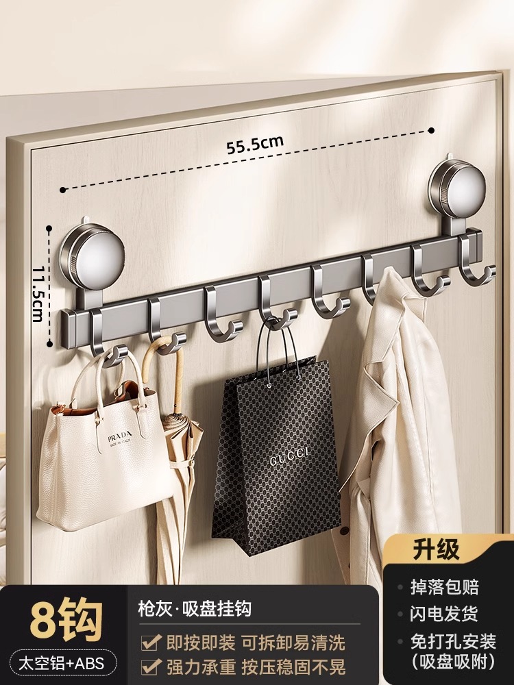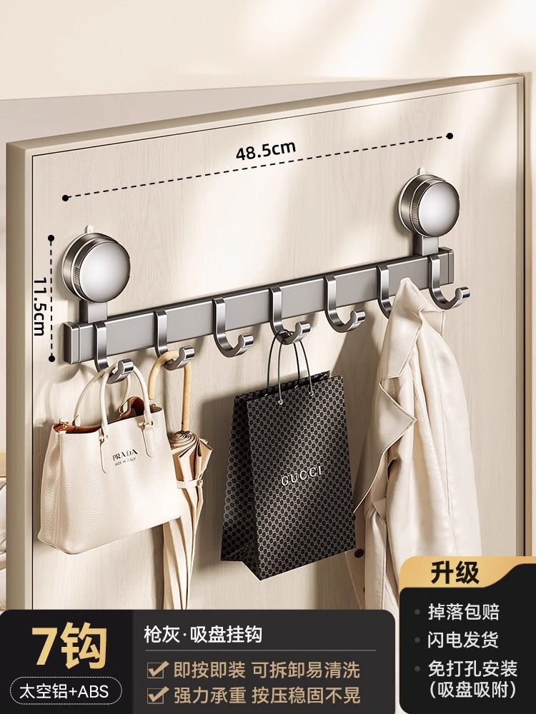 吸盘门后挂钩免打孔强力承重卧室入户门上挂衣架墙上挂衣钩置物架