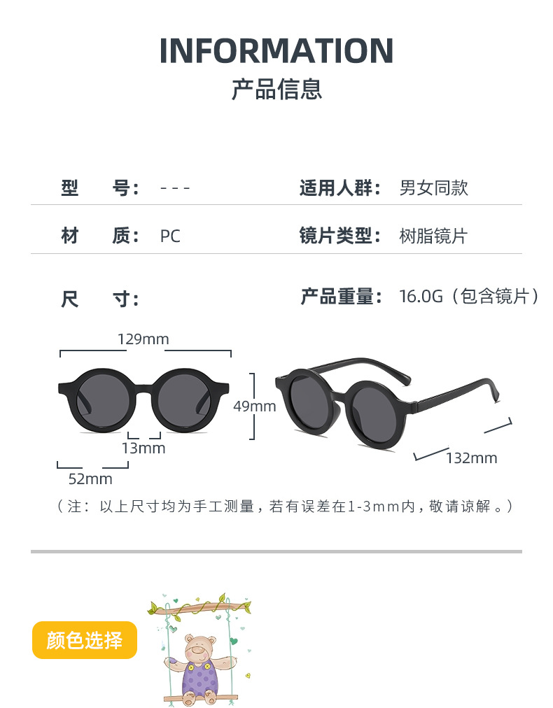 圆形儿童太阳镜2024新款潮韩版宝宝墨镜男孩女童时尚拍照防紫外线