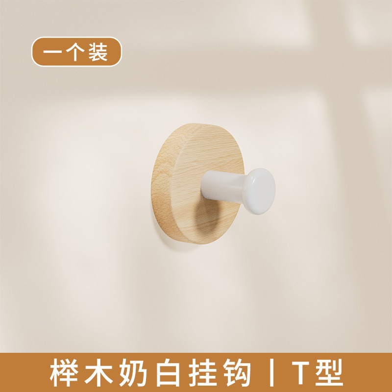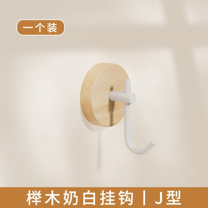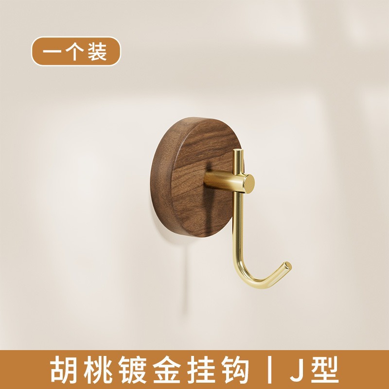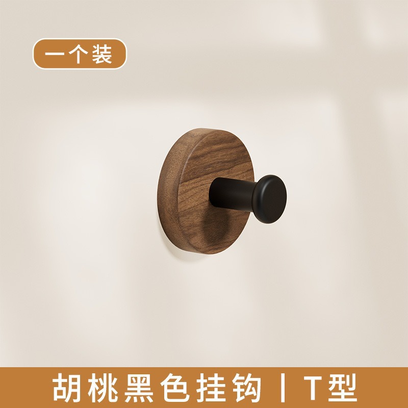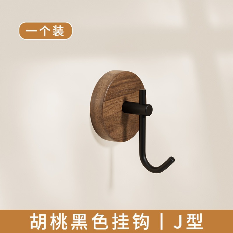 新款北欧实木挂衣钩胡桃木门后挂钩免打孔衣钩强力粘胶墙上挂衣架