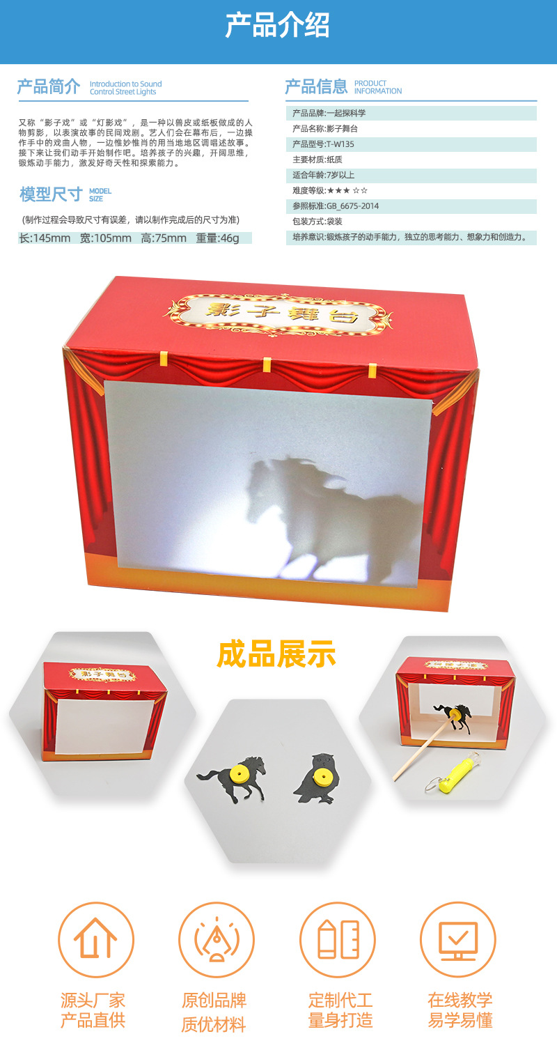 自制皮影戏 儿童手工diy科技小制作幼儿园科学实验影子舞台教具