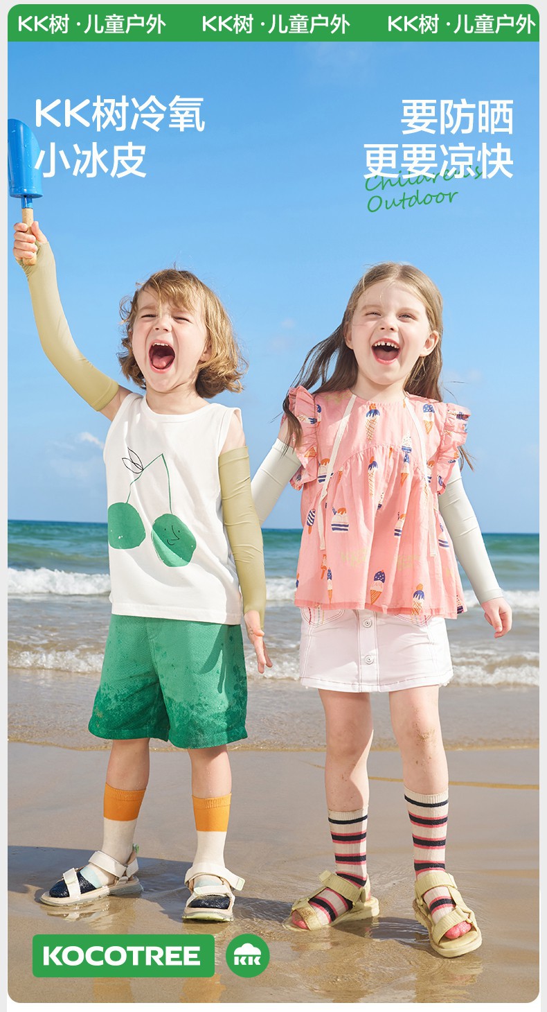 KK树儿童防晒袖套冰丝护袖宝宝夏季男孩女童冰袖透气薄款套袖透气