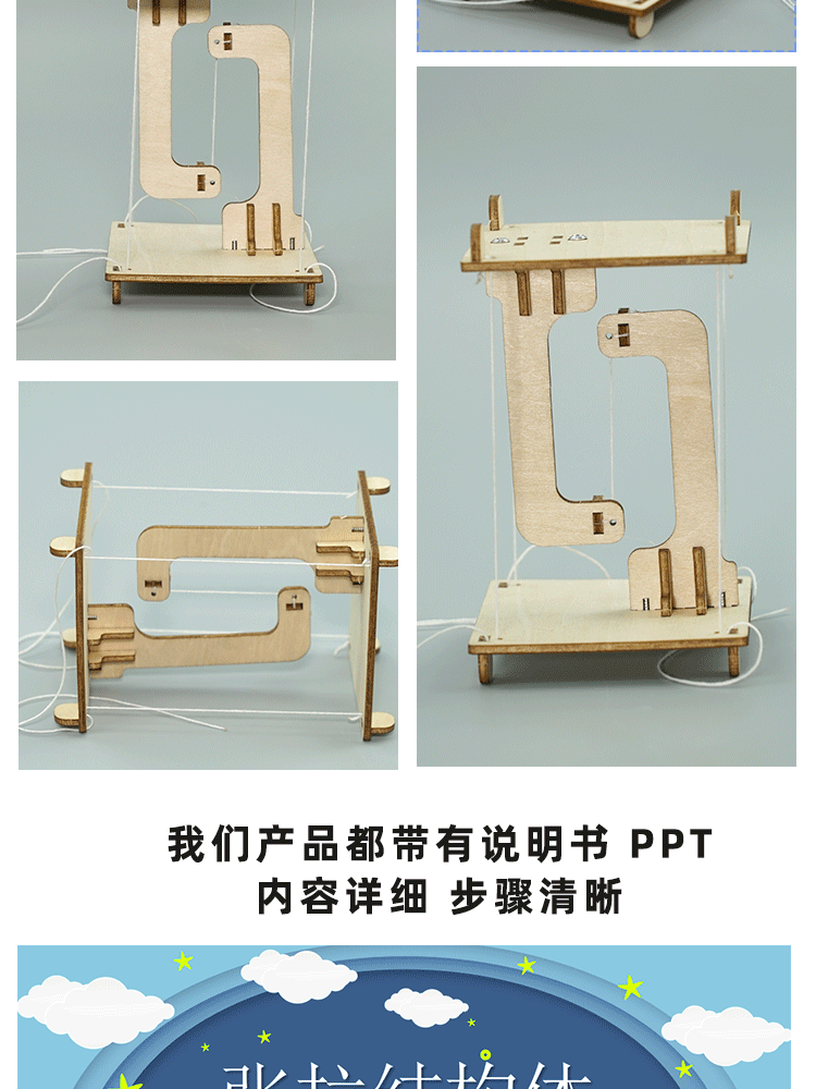 科技小制作diy张拉结构体物理类科学实验小发明steam教育科教玩具